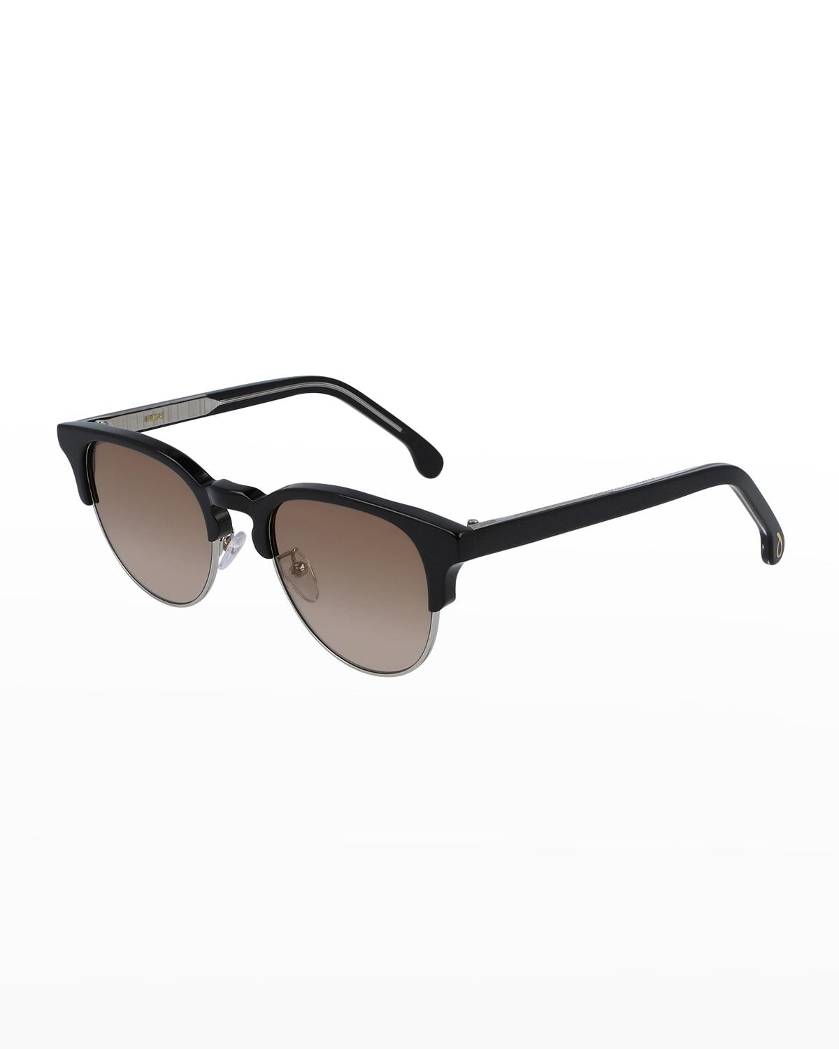 Paul Smith "Birch" round sunglasses with acetate/metal frames Eye/bridge/temple (in mm): 51-20-145 Gradient lenses Half-rim frames Keyhole nose bridge Adjustable nose pads Thin arms; angular temple tips with inlaid gold-tone P-logo 100% UVA/UVB protection Made in Italy