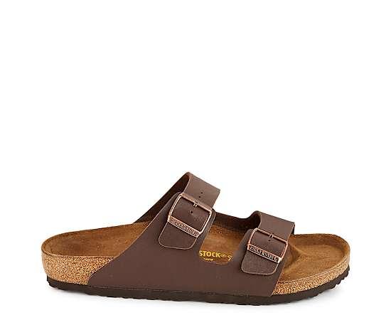 Birkenstock Arizona Men s Sandal A true pioneer of laid-back comfort, the Arizona mens Sandal from Birkenstock features the original footbed with pronounced arch support, a roomy toe box, and a deep heel cup. Two soft straps with buckles provide an adjustable fit. Birkenstock uses natural & renewable materials with a focus on environmentally friendly operations. Dual buckle closuresSuede insole Cork-latex footbed EVA outsole