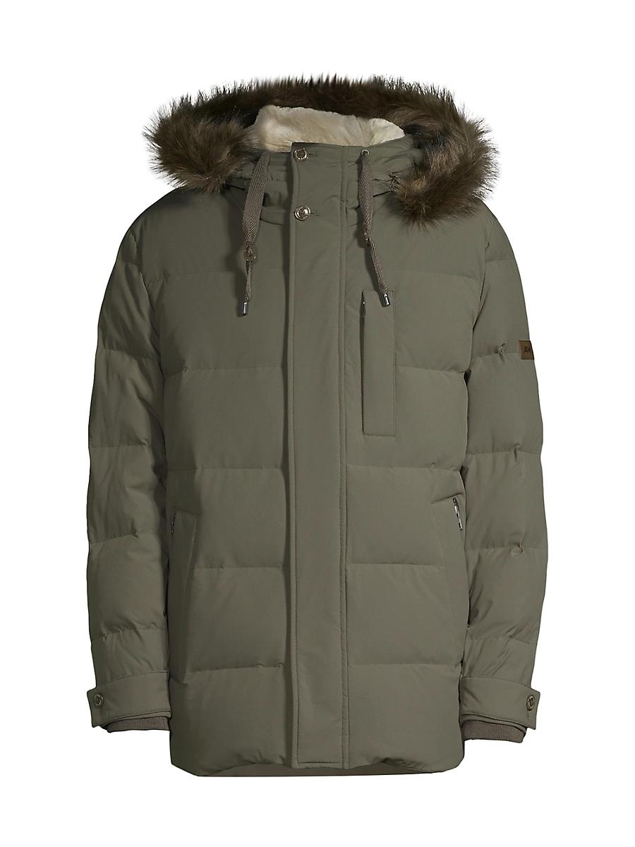 Detailed with a removable faux fur liner and faux fur strip along the hood edge, this jacket fastens with zip- and snap-front closures. Drawstring hood with detachable faux-fur trim Zip- & snap-front closure Side slip pockets Long sleeves 85% nylon/15% cotton Lining: 100% nylon Trim: 100% modacrylic Fur type: faux Faux fur trim: detach and dry clean Jacket: machine wash Imported SIZE & FIT About 31 from shoulder to hem. Mens Modern Coll & Outer - Seasonal Classifications > Andrew Marc > Saks Fifth Avenue > Barneys. Andrew Marc. Color: Ink. Size: Medium.
