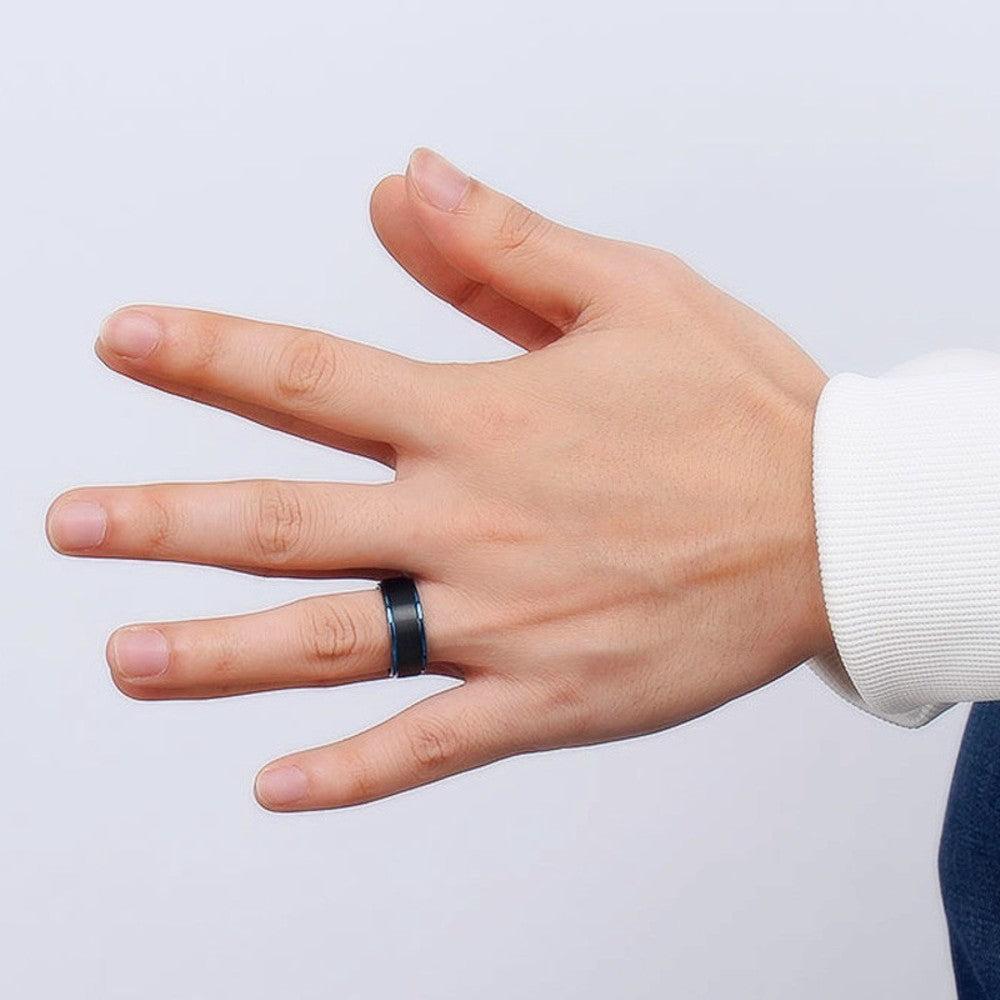 Tungsten Carbide 8 mm Black Comfort Fit Band Ring, Men's,