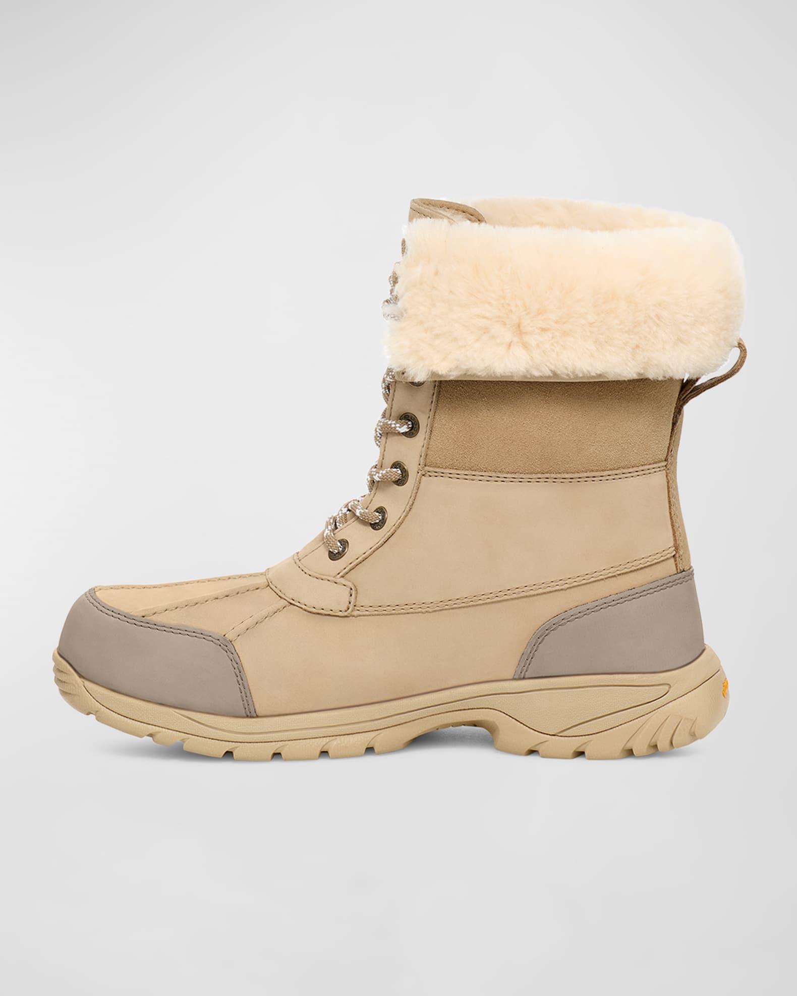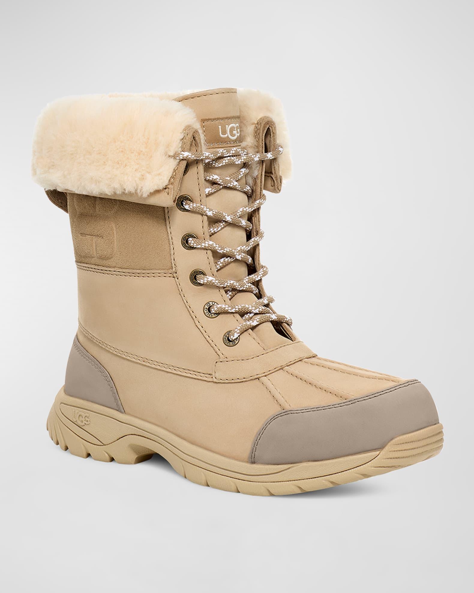 From UGG, the Mens Butte Logo Waterproof Boots feature:Waterproof nubuck upperWaterproof membrane constructionGusseted tongue with water repellent coatingCuffable shaft17mm UGGplush 60% upcycled wool, 40% lyocell shaft lining. 17mm UGGplush 60% upcycled wool, 40% lyocell tongue lining7mm Curly UGGplush 60% upcycled wool, 40% lyocell insoleEVA footbedEVA midsoleVibram outsole Approx. 8.5 shaft heightCold-weather rated to -20CImported.