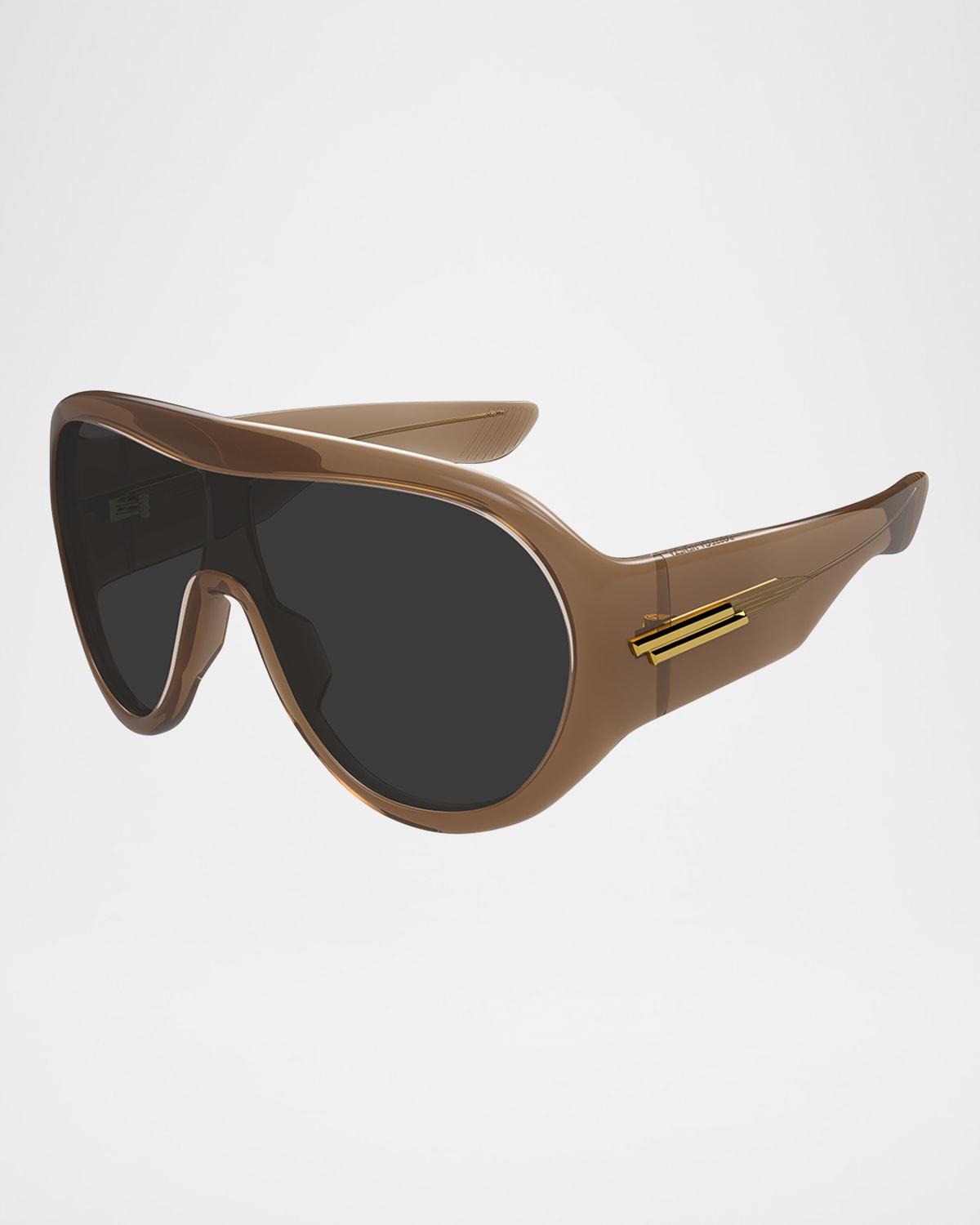 Bottega Veneta "BV1345SM" shield sunglasses in acetate Lens/bridge/temple (in mm): 99-1-120 Solid-color lens Saddle nose bridge Thick, tapered arms Exposed metal corewire Acetate 100% UVA/UVB protection Made in Japan Proposition 65 warning for California residents