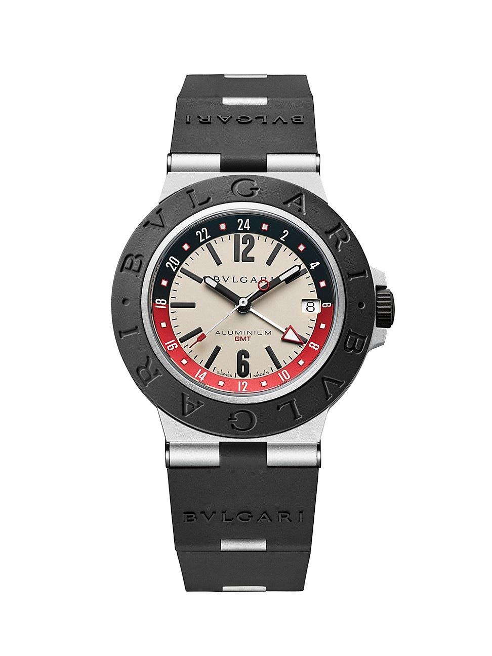 From the BVLGARI BVLGARI Collection. BVLGARIs watch features an octagonal aluminum and titanium case, a beige dial, and date display at three oclock. A logo-engraved bezel completes this sporty timepiece. Mechanical movement Fixed logo-engraved bezel Sapphire crystal Beige dial Luminescent hands Indices and Arabic numerals Second hand Date display at 3 oclock Aluminum and titanium case Black rubber bracelet Made in Switzerland FEATURES Case is water-resistant to 10 ATM Model number: 103963 SIZE Octagonal case: 40mm (1.57) ABOUT THE BRAND Founded in Italy in 1884 by Greek silversmith Sotirio Bulgari, BVLGARI has become synonymous with unparalleled craftsmanship and exquisite jewelry. The brands Roman heritage can be seen in pieces inspired by the citys architecture, artwork and ancient mosaics. Today, the house continues to translate its rich history into opulent designs and fragrances. Fine Jewelry - Bvlgari Watches And Jewe > Bvlgari > Saks Fifth Avenue > Barneys. BVLGARI. Color: Black.