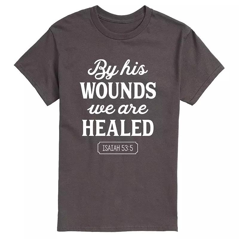 Add fun new style to your casual wardrobe with this Mens By His Wounds Isaiah Graphic Tee. Add fun new style to your casual wardrobe with this Mens By His Wounds Isaiah Graphic Tee. FEATURES Crewneck Short sleeveFABRIC & CARE Solid colors: cotton; Heather colors: cotton, polyester Machine wash Imported Size: XXL. Color: Charcoal. Gender: male. Age Group: adult.