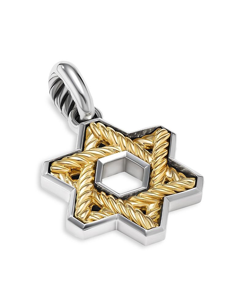 Mens Cable Star of David Amulet in Sterling Silver with 18K Yellow Gold, 19MM