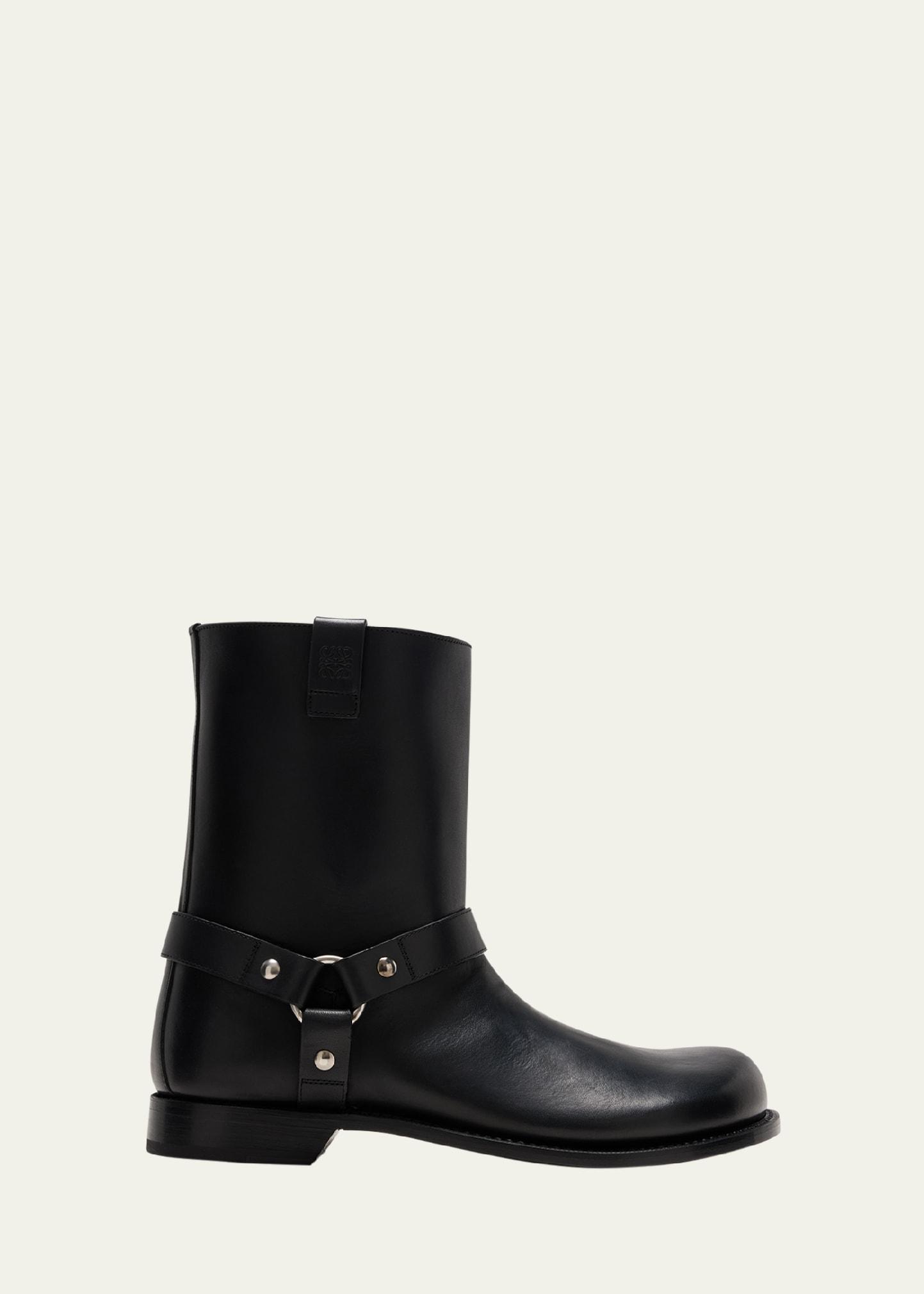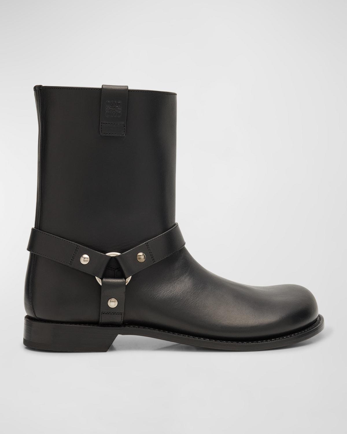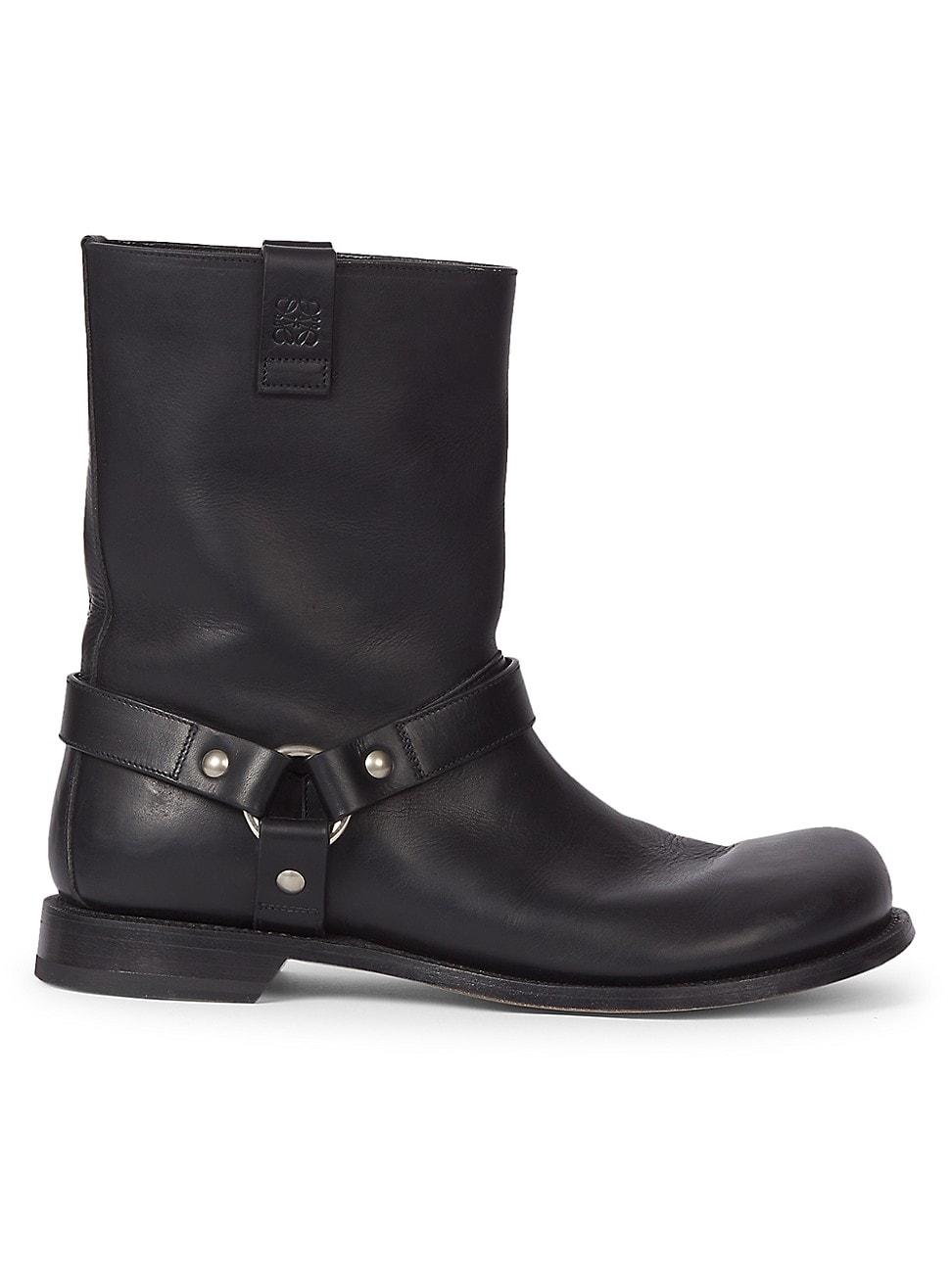 LOEWEs Campo pull-on Biker Boots are crafted of luxurious leather and designed with a round toe. Round toe Pulls on Leather upper Leather sole Made in Italy. Mens Shoes - Designer Shoes > Loewe > Saks Fifth Avenue > Barneys. LOEWE. Color: Black. Size: 10.