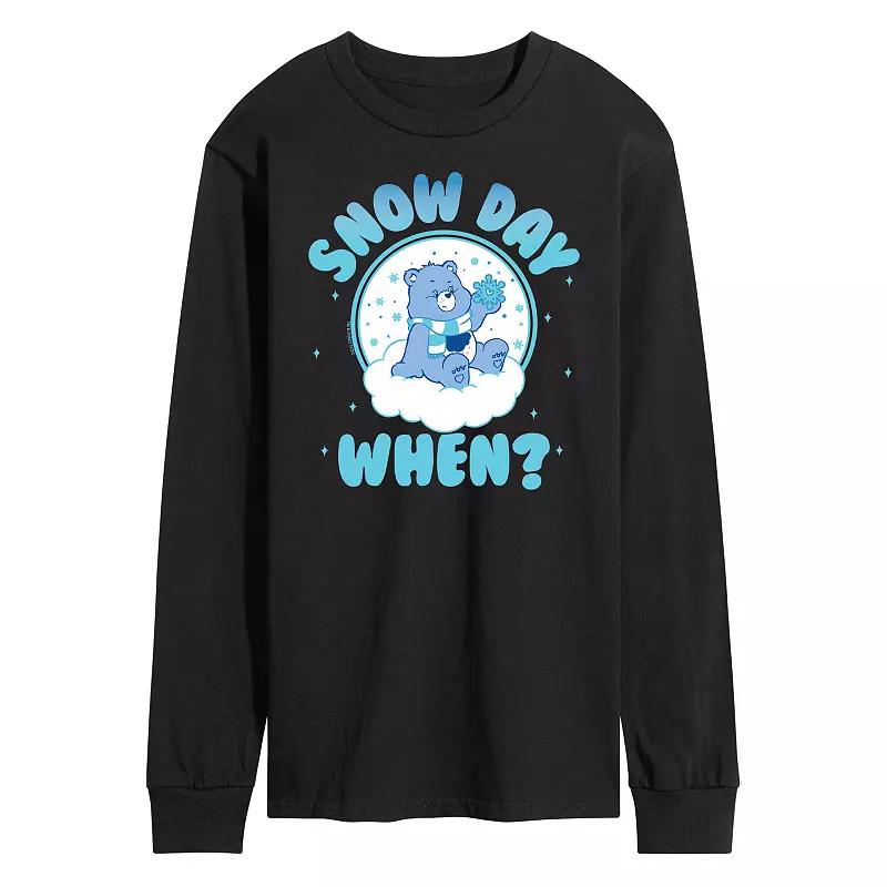 He will love showing off his style with this Mens Care Bears Snow Day When Long Sleeve Graphic Tee. FEATURES Crewneck Long sleeveFABRIC & CARE Solid Colors: Cotton ; Heather Colors: Cotton/Polyester Machine wash Imported Color: Black. Gender: male. Age Group: adult.