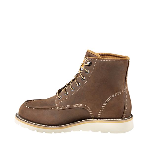 Carhartt Waterproof 6-Inch Moc Toe Men s Wedge Boot Stay comfortable and protected on the job with the Waterproof 6-Inch Moc Toe men s wedge Boot from Carhartt. This work Boot features a durable waterproof leather upper with lace-up closure for a secure fit and FastDry lining that wicks away sweat and prevents odor. A Cushioned footbed soothes and supports your feet, while the Goodyear dual-density Rubber outsole provides excellent oil & slip-resistant traction. Storm Defender waterproof leather upper Lace-up closure Round non-safety toe FastDry lining Cushioned footbed Goodyear dual-density Rubber outsole