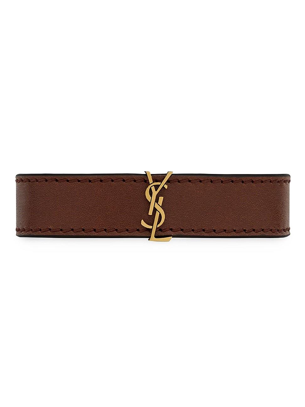 Wide bracelet in vegetable-tanned leather, adorned with the Cassandre at the center. Magnetic box clasp Saint Laurent Paris engraving Bronze-toned hardware Width: 1.5 cm / 0.6 Size: S 16.5 cm / 6.5, M 17.5 cm / 6.9, L 18.5 cm / 7.3 Made in Italy. Lsd Handbags - Saint Laurent > Saint Laurent > Saks Fifth Avenue > Barneys. Saint Laurent. Color: Dark Chocolate Light Bronze. Size: Medium.