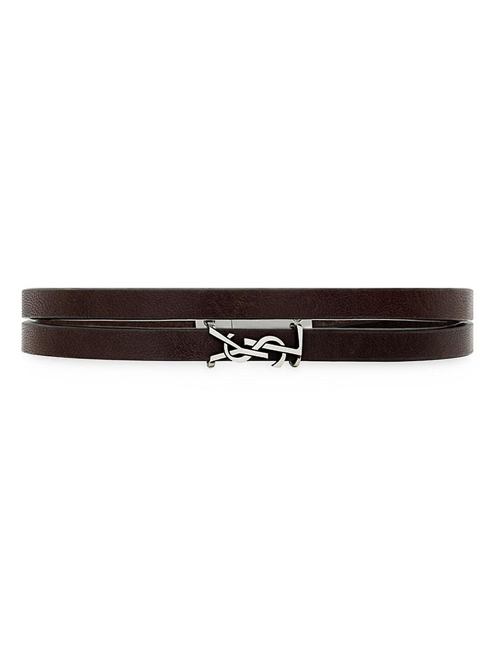 Double-wrap thin bracelet in vegetable-tanned leather adorned with the cassandre at the center. Magnetic sliding clasp engraved with Saint Laurent Paris Silver-toned hardware Dimensions: 0.5 x 2 cm / 0.2 x 0.8 Made in Italy SIZE & FIT Size S: 16.5 cm / 6.5 Size M: 17.5 cm / 6.9 Size L: 18.5 cm / 7.3 Size XL: 19.5 cm / 7.7. Lsd Handbags - Saint Laurent > Saint Laurent > Saks Fifth Avenue > Barneys. Saint Laurent. Color: Brown And Oxidized Silver. Size: Medium.