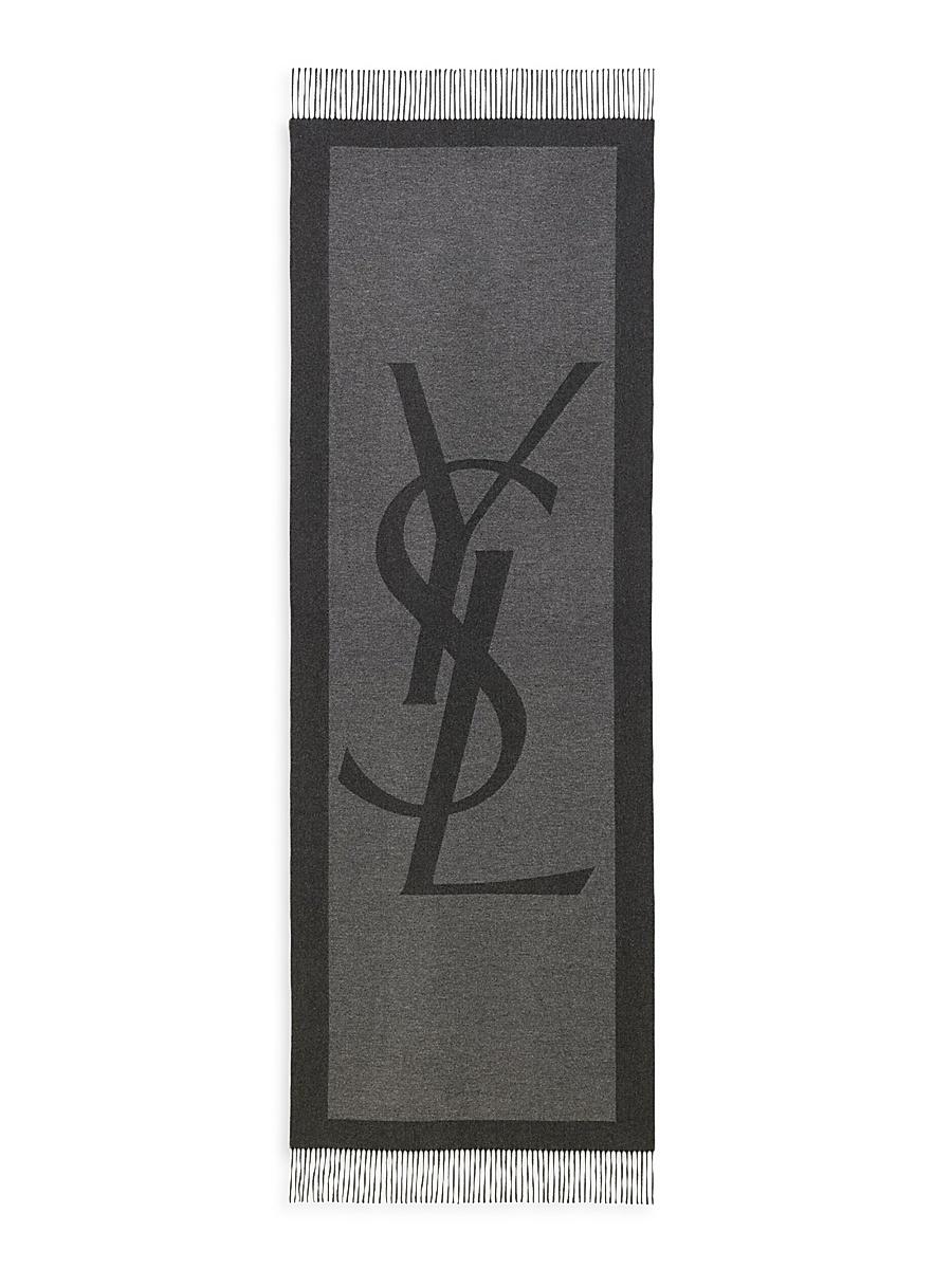 Long rectangular scarf decorated with oversized cassandre jacquard. Cassandre jacquard Fringed ends Dimensions: 60 x 210 cm / 23.6 x 82.7 Made in Italy. Lsd Handbags - Saint Laurent > Saint Laurent > Saks Fifth Avenue > Barneys. Saint Laurent. Color: Dark Grey.