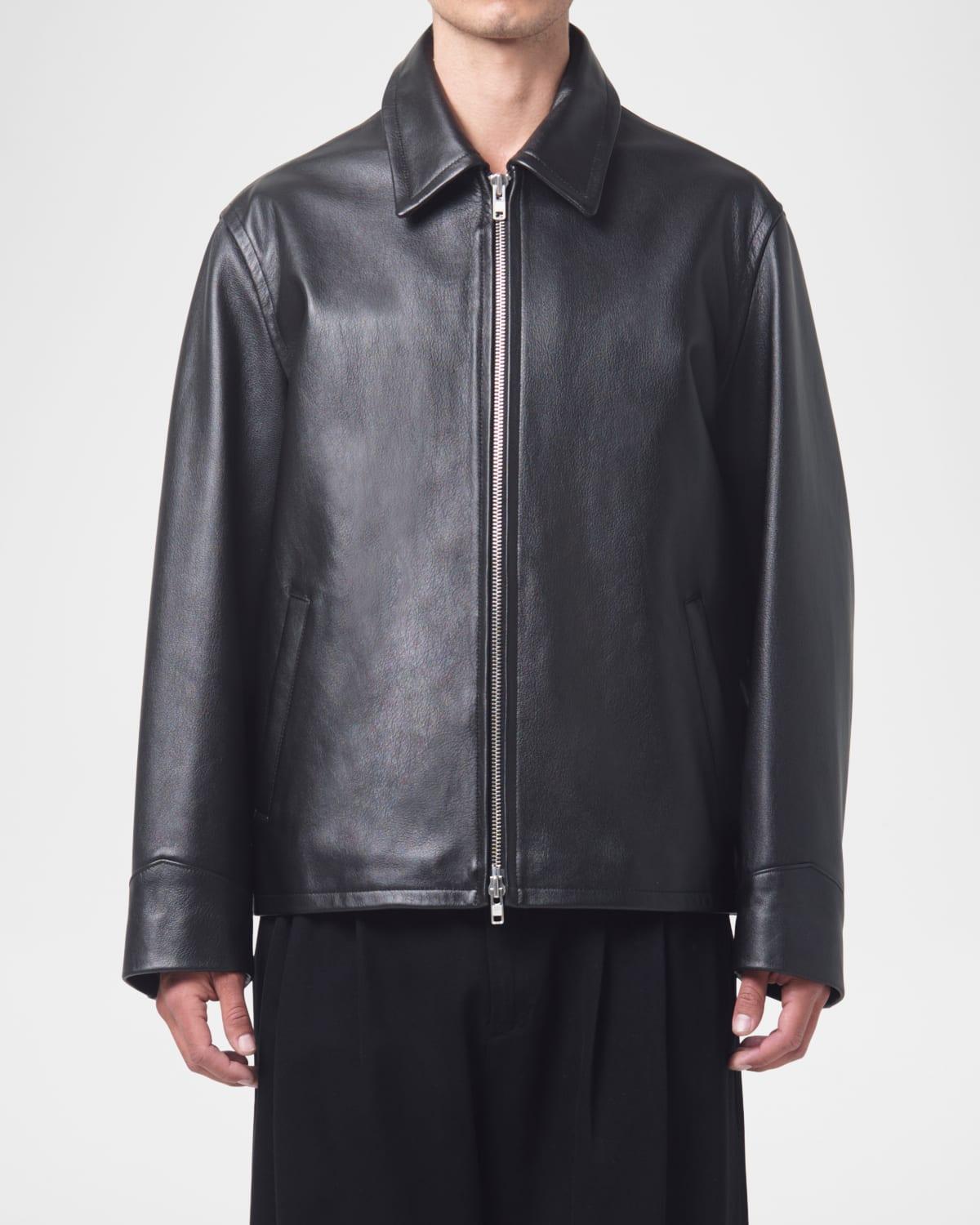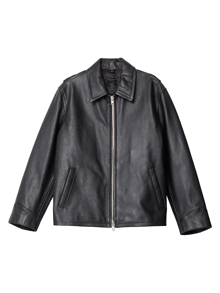 AGOLDE Chadwick jacket in smooth goatskin leather Point collar Dual zip closure Welt pockets Classic, boxy fit Long sleeves Spot clean Imported
