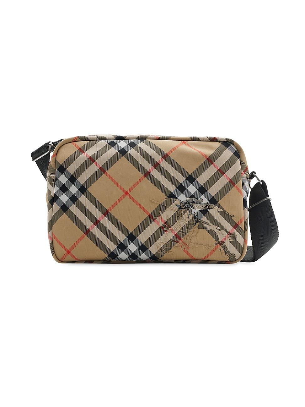 This crossbody bag from Burberry is designed with the labels signature check and features an appliqud equestrian knight. Adjustable strap Exterior: one zip pocket Interior: two slip pockets Zip closure Polyester/polyurethane Lining: polyester/polyurethane Made in Italy SIZE About 9.8W x 7.1H x 4.7D Strap drop: about 12.2-26.8 ABOUT THE BRAND Founded in 1856 by 21-year-old Thomas Burberry, the brand set out with a mission to stylishly protect against British weather-and Burberrys iconic trench coat was born. In the 1920s, its renowned check pattern was introduced as the coats lining. Today, under Creative Director Daniel Lee, the heritage brand continues to evolve and create timelessly classic mens, womens and kids pieces, along with beauty. Men Accessories - Designer Accessories > Burberry > Saks Fifth Avenue > Barneys. Burberry. Color: Sand.
