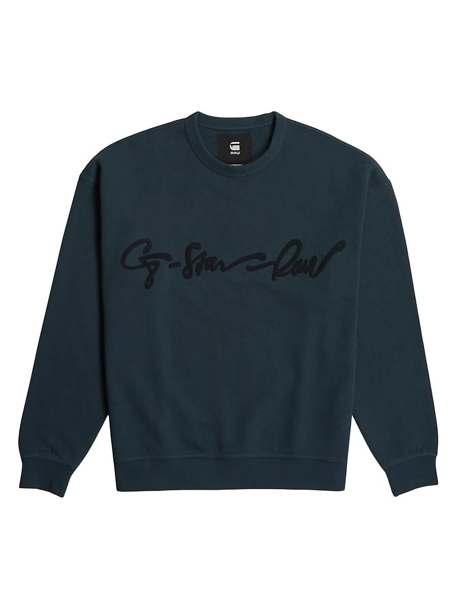 Crafted of cotton, this crewneck relaxed sweatshirt is accented with a chenille script G-Star RAW logo embroidered graphic at the front. Crewneck Long sleeves Pulls over 100% cotton Machine wash Imported SIZE & FIT Model measurements: 62 tall, 40 chest Model is wearing a US size Medium. Mens Denim & Contemp - Contemp Denim And Bottom > G-star Raw > Saks Fifth Avenue > Barneys. G-Star RAW. Color: Legion Blue. Size: XL.