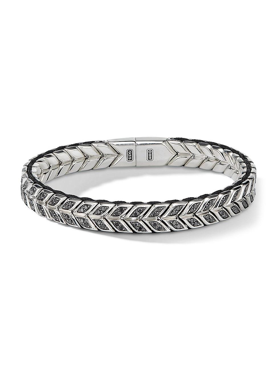 David Yurman skillfully reinterprets chevron the ancient V-shaped pattern used in architecture and art in this modern, sculptural collection. Viewed in relation to one another, each half of the motif is a mirror image of cable. Sterling silver Black nylon Pav black diamonds, 1.97 total carat weight Bracelet, 9mm Magnetic clasp Imported ABOUT THE BRAND David, a sculptor, and his wife, Sybil, a painter, launched their innovative jewelry brand in 1980 in New York City. Since then, the American design house has pioneered cutting-edge collections from its iconic combination of sterling silver and diamonds to signature pinky rings. Today, with their son Evan, the Yurmans continue to deliver timeless pieces inspired by nature, art, ancient symbols and Manhattans stunning architecture. Lsd Jewelry - David Yurman > David Yurman > Saks Fifth Avenue > Barneys. David Yurman. Color: Black Diamond. Size: Large.