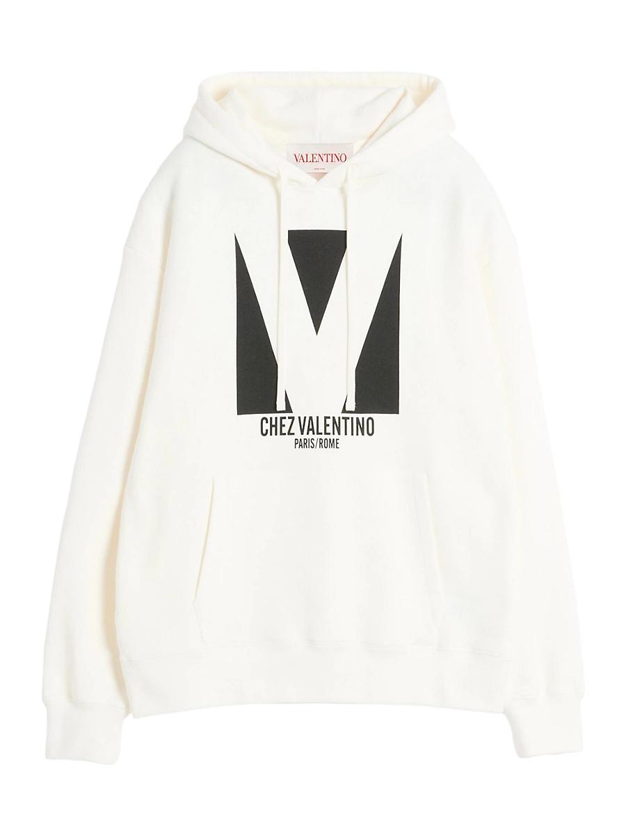 Cotton sweatshirt with hood and Chez Valentino print. Loose fit Chez Valentino print on the chest Elasticated ribbed trim Drawstring hood Composition: 100% Cotton Length: 76 cm / 29.9 in. from the back of the neck in a size M The model is 187 cm / 61 tall and wears a size XL Made in Italy. Lsd Rtw - Valentino Rtw > Valentino Garavani > Saks Fifth Avenue > Barneys. Valentino Garavani. Color: Ivory. Size: XS.
