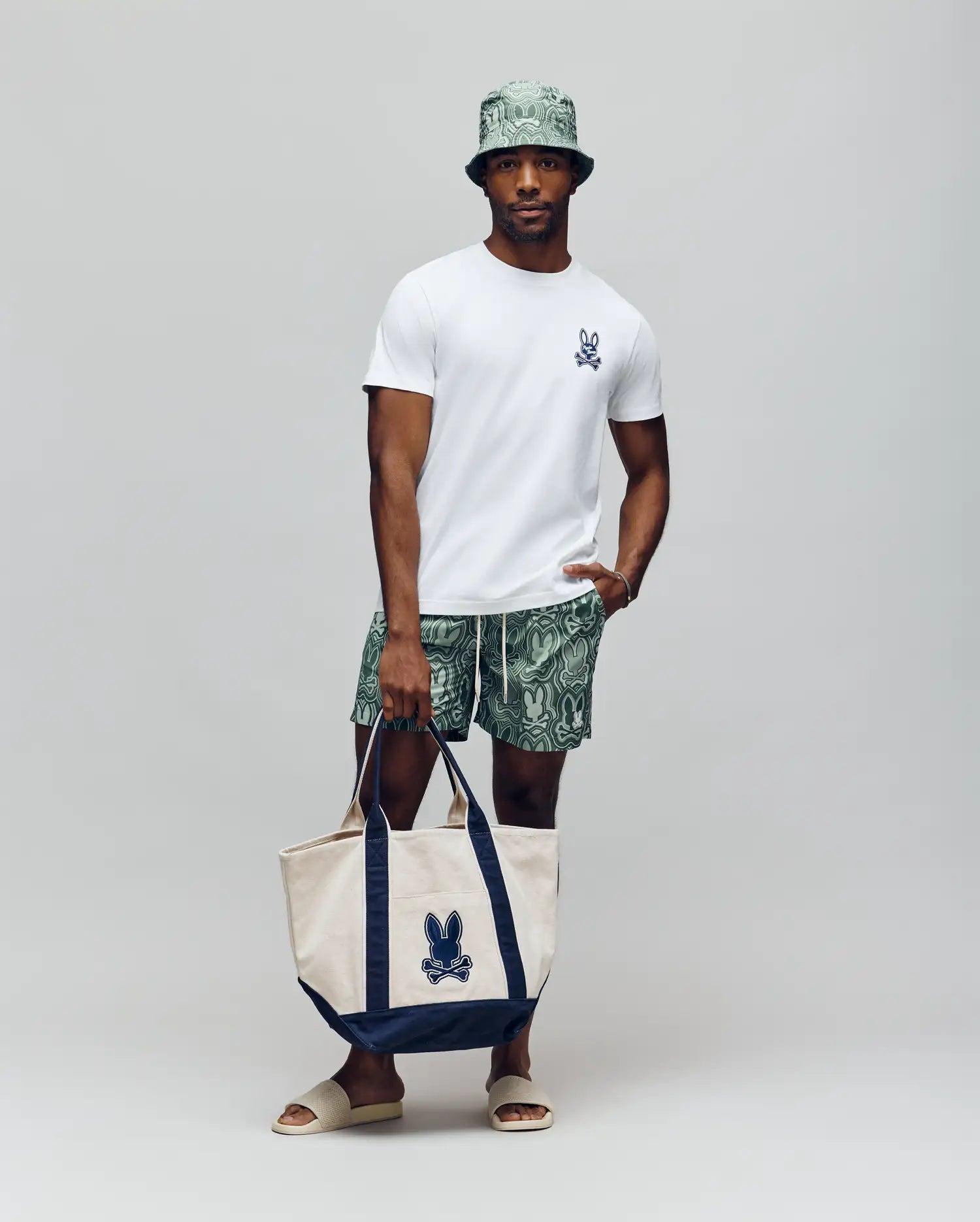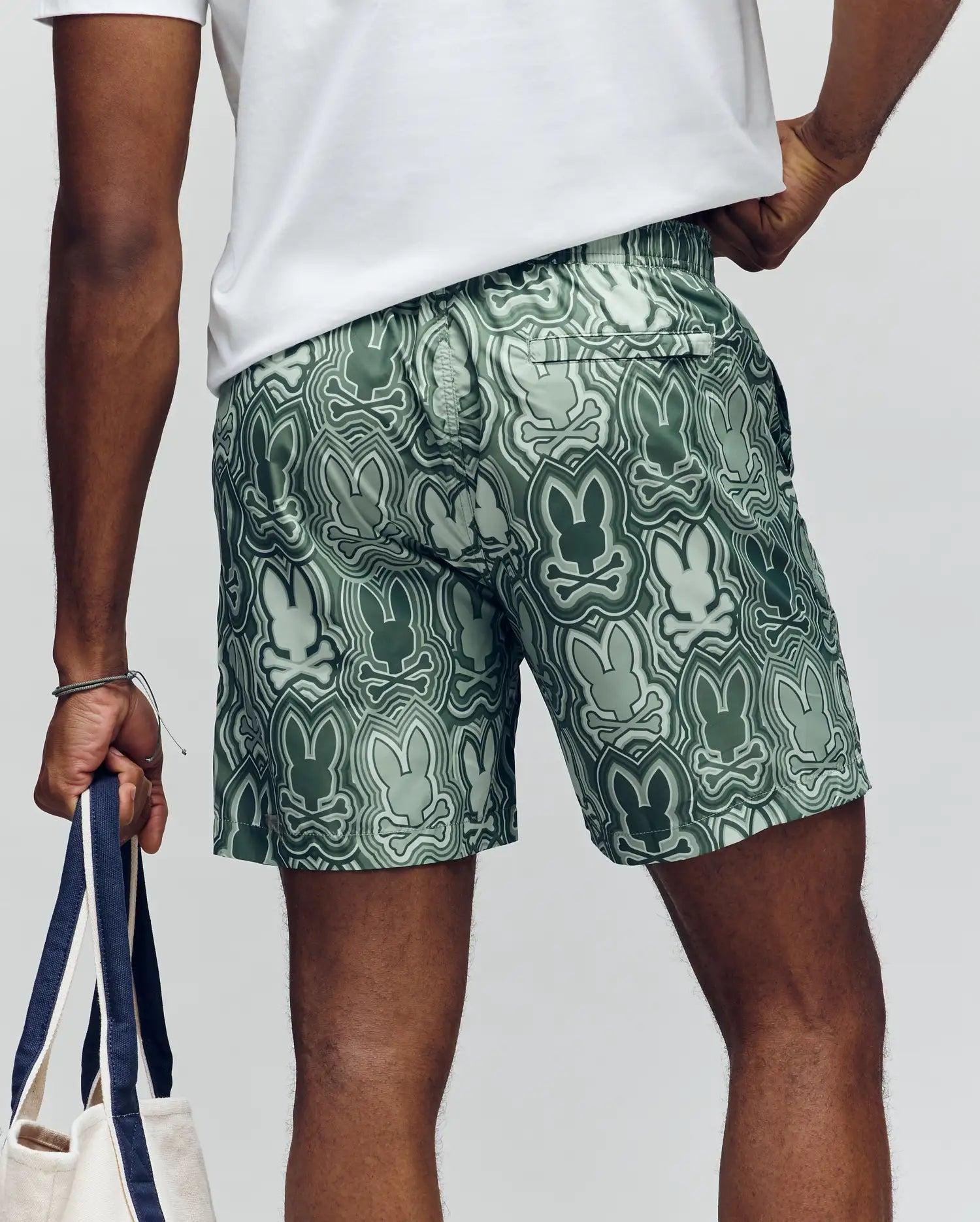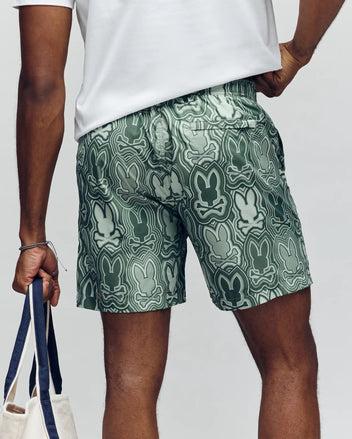 The Mens Chuck All Over Print Lightweight Swim Trunk in Iceberg Green from Psycho Bunny in blends contemporary design with lasting comfort—perfect for all-day wear.
