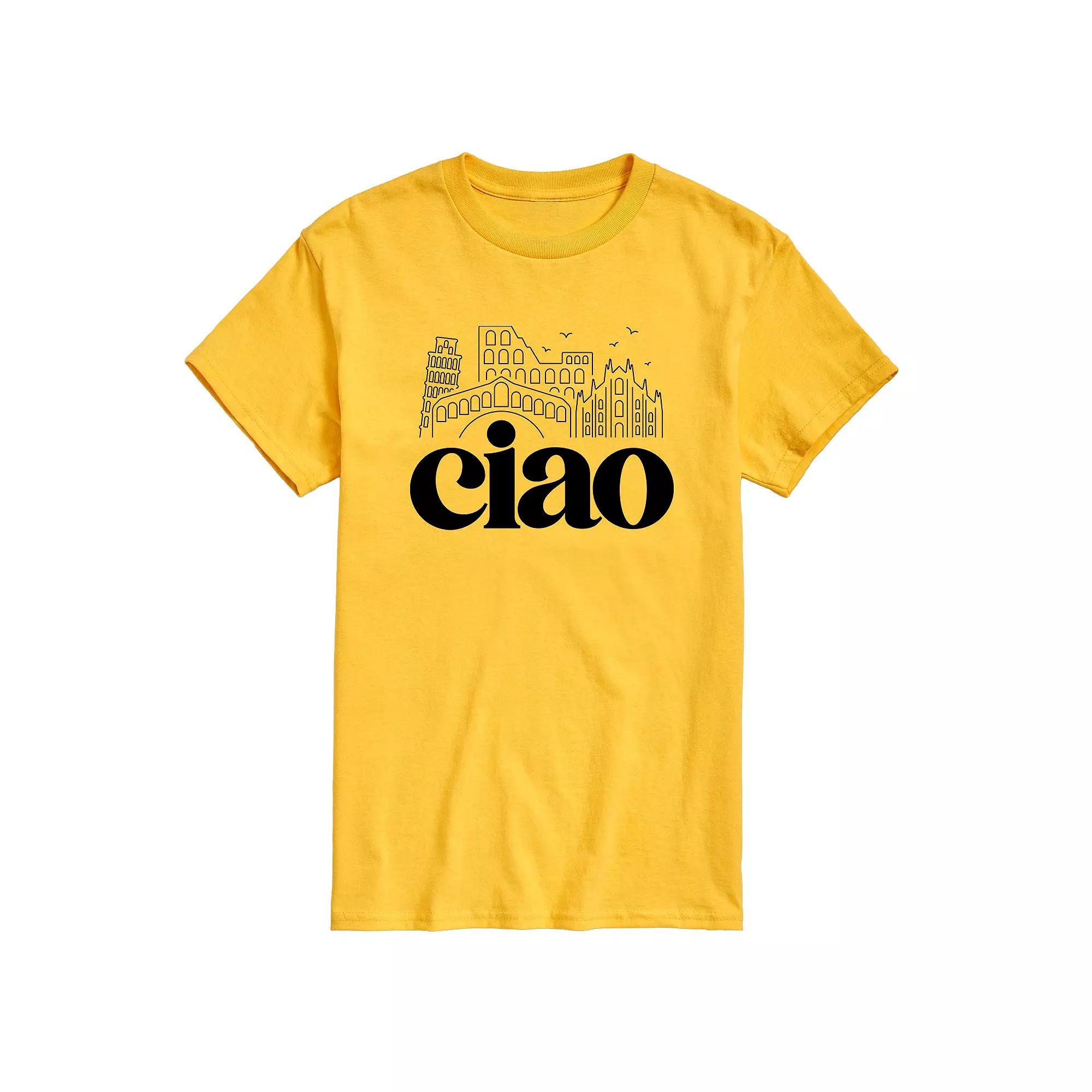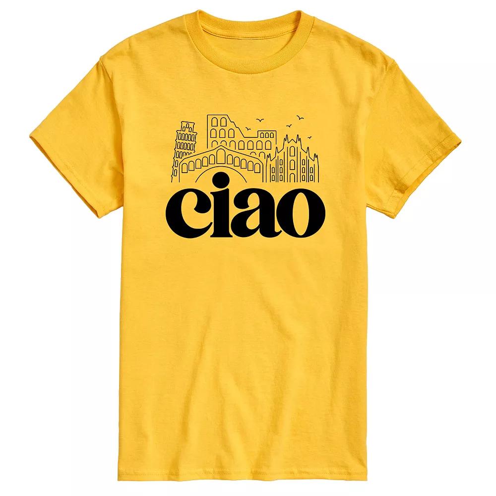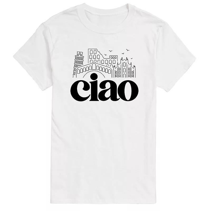 Hell love showing off his personal sense of style with this mens Ciao Italy Landmarks Tee. FEATURES Crewneck Short sleeveFIT & SIZING ClassicFABRIC & CARE Solid colors: cotton; Heather colors: cotton, polyester Machine wash Imported Size: XL Tall. Color: White. Gender: male. Age Group: adult. Pattern: graphic.