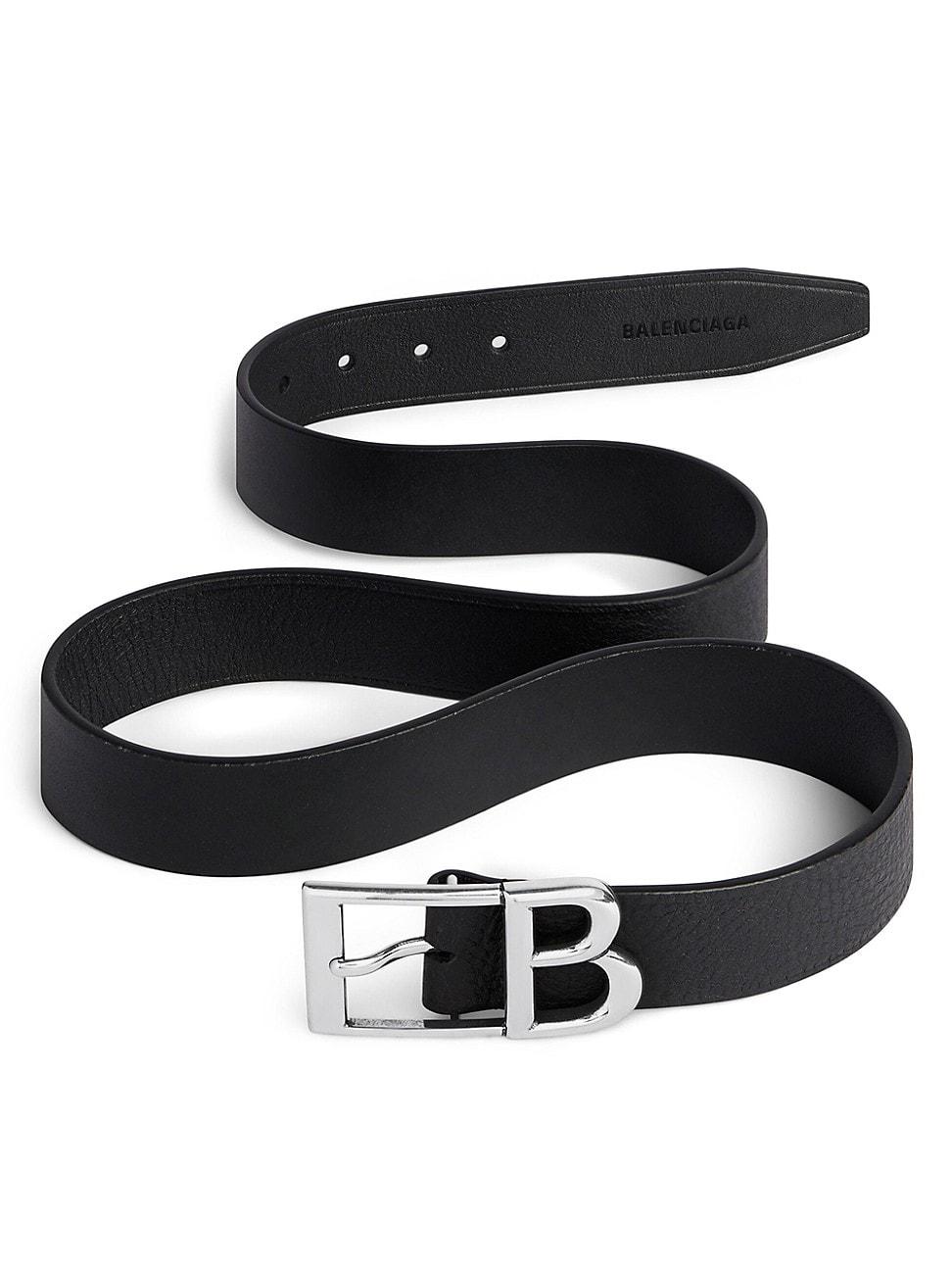 Balenciaga belt in calfskin Approx. 1.4W Tonal debossed logo at end tip Agedsilver B logo hardware Rectangle prong buckle Adjustable fit Leather Made in Italy