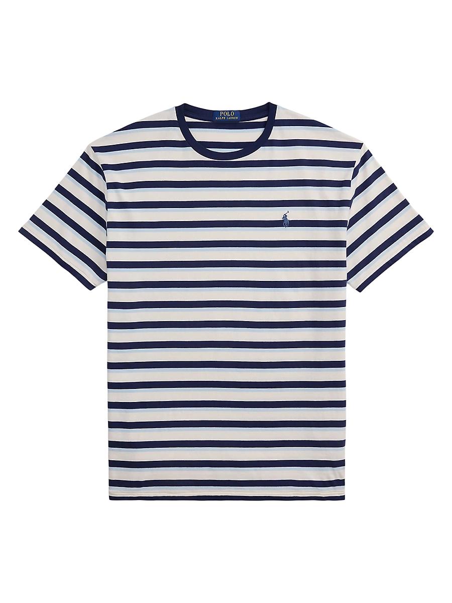 This cotton T-shirt from Polo Ralph Lauren is adorned with a classic striped pattern and is specially treated for a sun-faded appearance. Crewneck Short sleeves Pulls over 100% cotton Machine wash Imported SIZE & FIT Classic fit: Cut fuller through the chest, waist, and sleeve, with a lower armhole that falls closer to the elbow About 28.5 from shoulder to hem Shoulder: about 20 Chest: about 44 Model measurements: 62 tall, 40 chest, 31 waist Model is wearing a US size Medium. Men Luxury Coll - Polo Blue Label > Polo Ralph Lauren > Saks Fifth Avenue > Barneys. Polo Ralph Lauren. Color: Blue Note Multi. Size: Small.