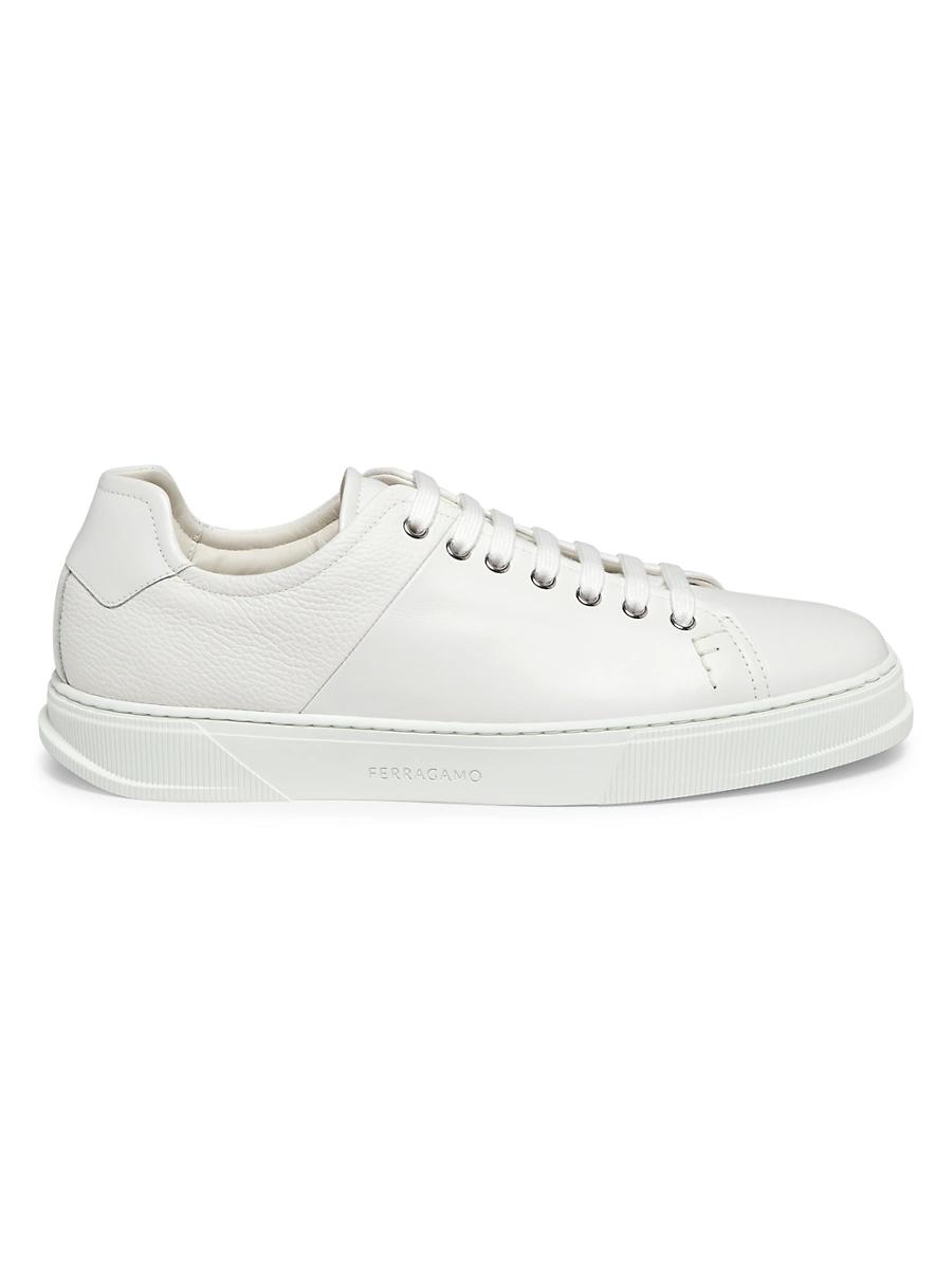 Made in Italy, Salvatore Ferragamos Clayton low-top sneakers are made of leather with a durable rubber sole. Round toe Lace-up style Leather upper Textile lining Rubber sole Made in Italy ABOUT THE BRAND Italian designer Salvatore Ferragamo began his journey in 1927 with a vision of creating the worlds most beautiful shoes. The label expanded to menswear in the 1970s, and remains famed for its made-in-Italy pieces. The craftsmanship inherent in its shoes is also found in accessories like sunglasses, belts and ties. The brands signature Gancini logo-a backwards horseshoe-can be found on its classic loafers and fine leather goods. Mens Shoes - Ferragamo Mens Shoes > Ferragamo > Saks Fifth Avenue > Barneys. FERRAGAMO. Color: Bianco Ottico. Size: 11.
