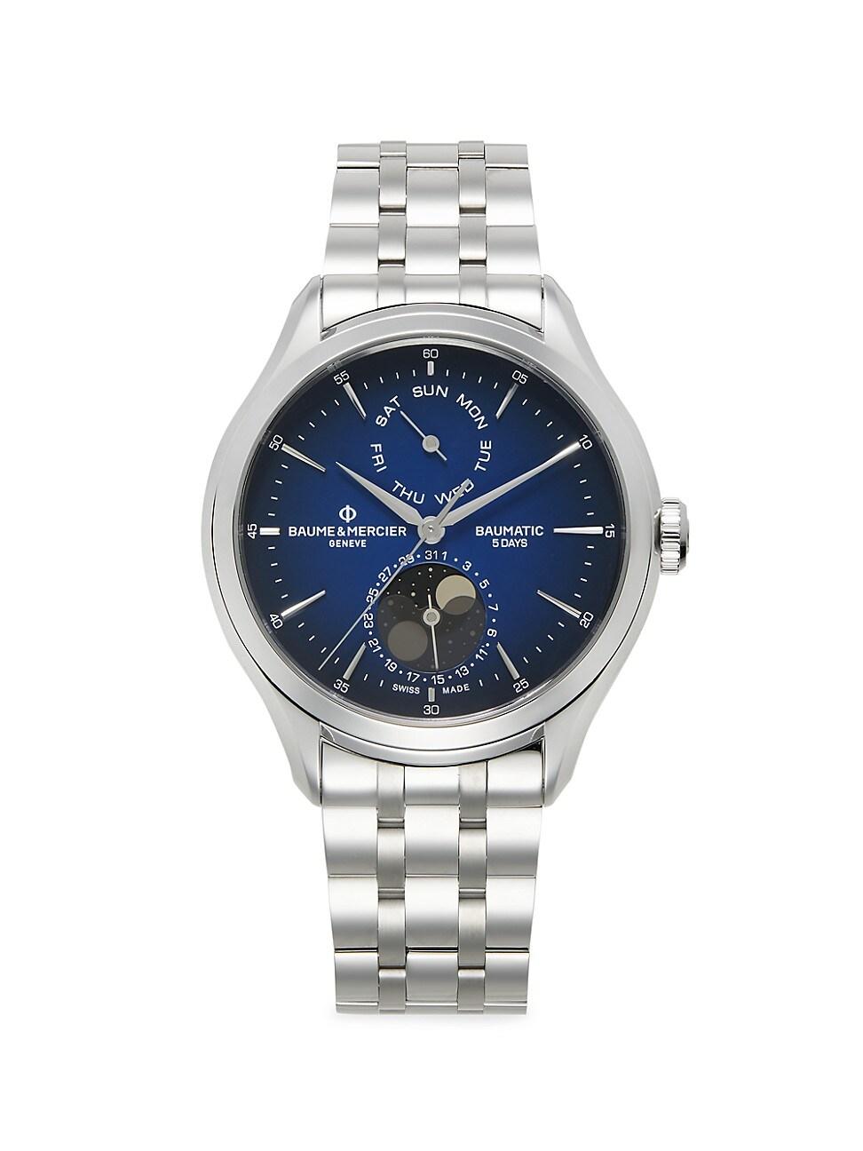 From the Clifton Collection. Secured with a stainless steel bracelet, Baume & Merciers watch features a gradient blue dial with a day and date display. Quartz movement Polished bezel Sapphire crystal Gradient blue dial Baton hour markers Day and date display Stainless steel case and bracelet Deployant clasp Made in Switzerland FEATURES Water-resistant to 5 ATM Model number: M0A10725 SIZE Round case: 42mm (1.65). Fine Jewelry - Baume And Mercier Watche > Baume & Mercier > Saks Fifth Avenue > Barneys. Baume & Mercier. Color: Steel.