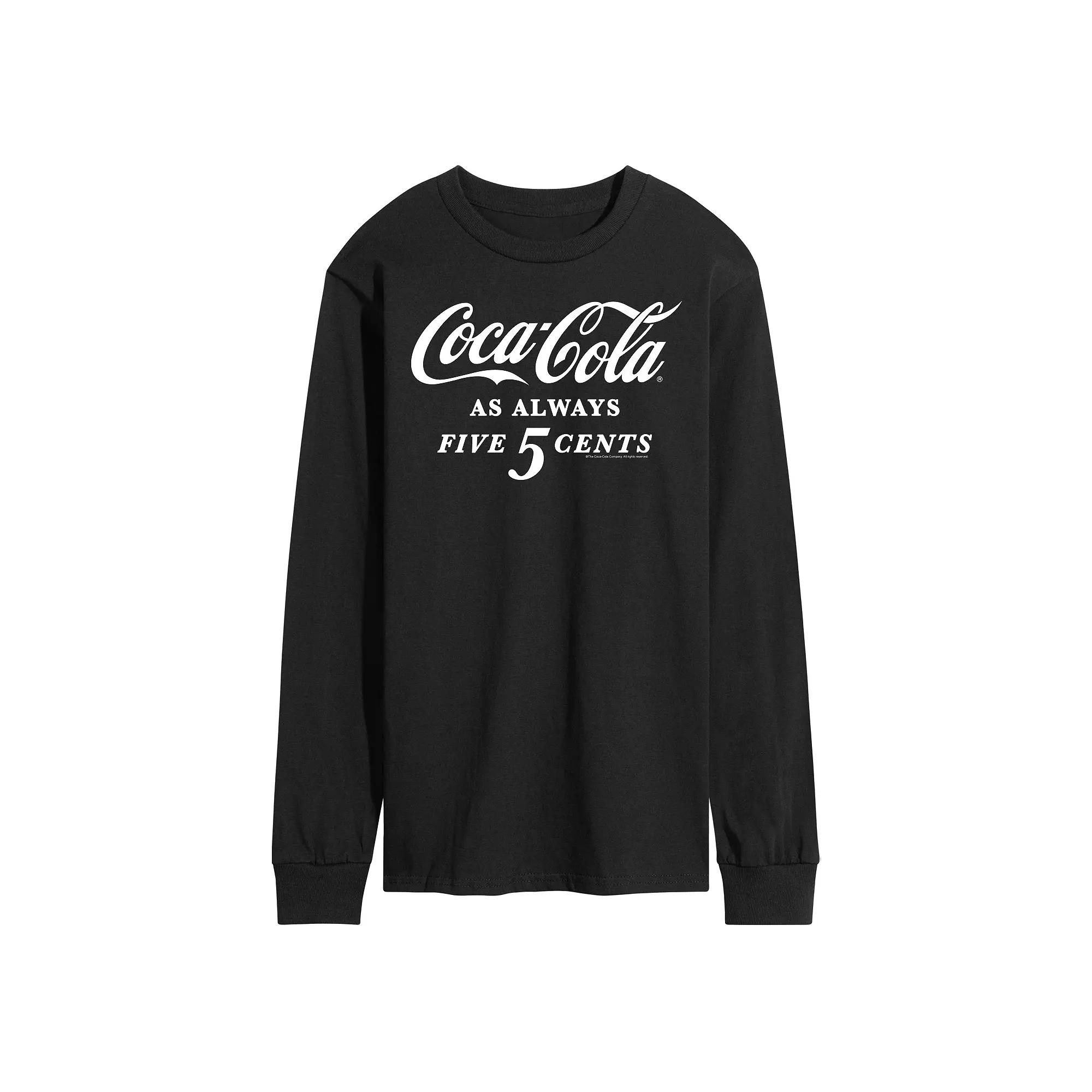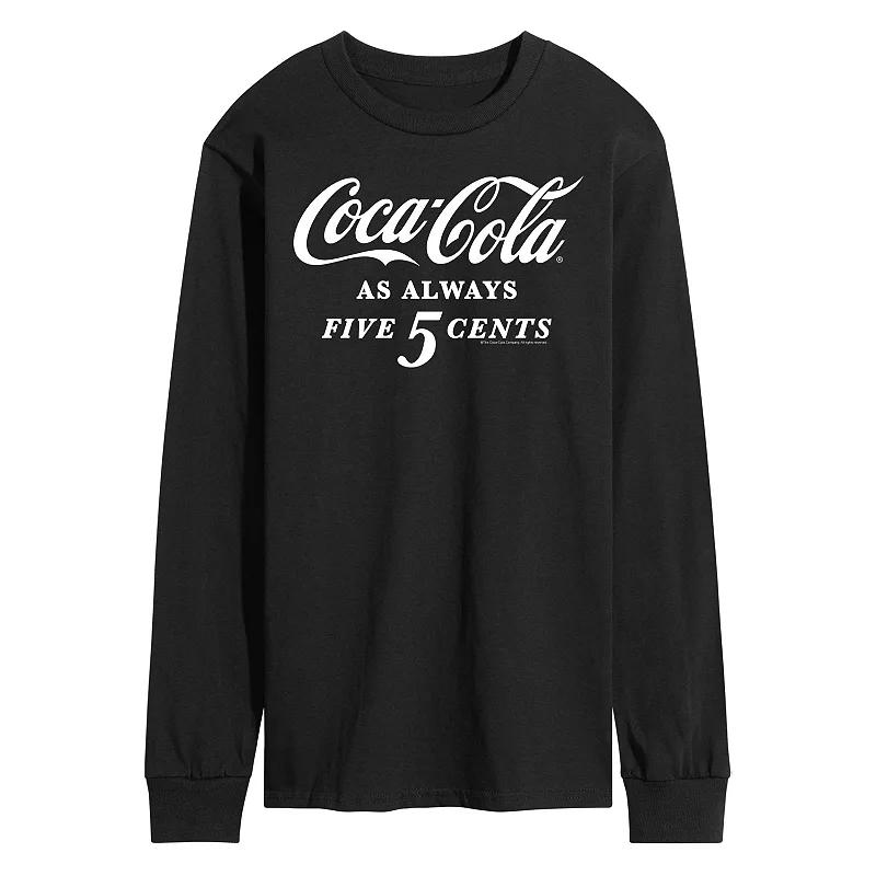 Quench his thirst for style with this Mens Coca-Cola Five Cents Long Sleeve Graphic Tee. Quench his thirst for style with this Mens Coca-Cola Five Cents Long Sleeve Graphic Tee. FEATURES Crewneck Long sleeveFABRIC & CARE Cotton, polyester Machine wash Imported Color: Black. Gender: male. Age Group: adult.