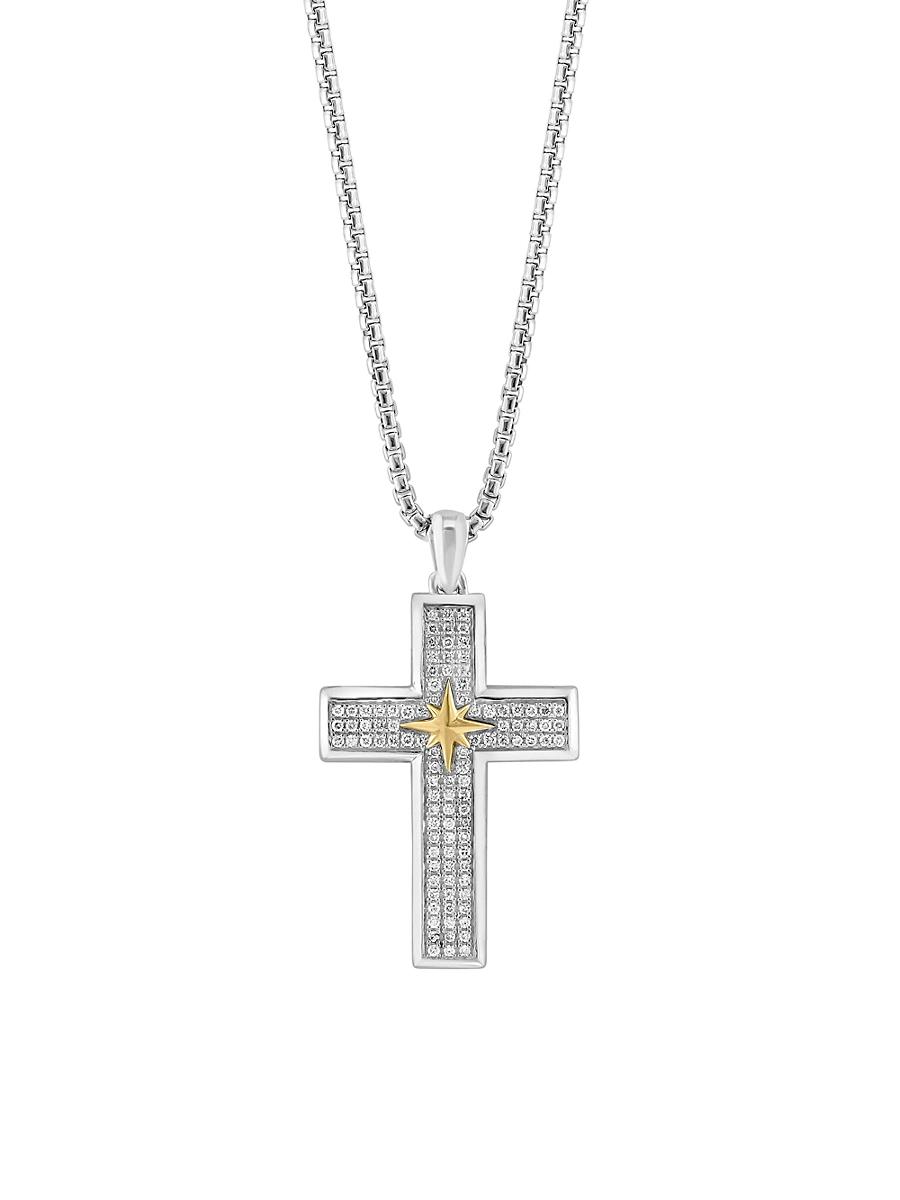 ONLY AT SAKS. Crafted of sterling silver, this Saks Fifth Avenue Collection necklace features a round-cut diamond-embellished cross pendant with gold-plated detailing. Diamonds, 0.63 tcw Diamond color grade: H-i Diamond clarity grade: I2 Sterling silver Lobster clasp Made in USA SIZE Adjustable chain: about 22L Pendant: about 1.25W ABOUT THE BRAND This only-at-Saks line offers a complete wardrobe in high-quality fabrics and a classic fit. Standouts include tailored suiting, casual officewear, laid-back weekend looks and elegant evening pieces. Mens Pvt Brands - Sfamc Personal Furnishin > Saks Fifth Avenue Collection > Saks Fifth Avenue > Barneys. Saks Fifth Avenue Collection. Color: Silver.