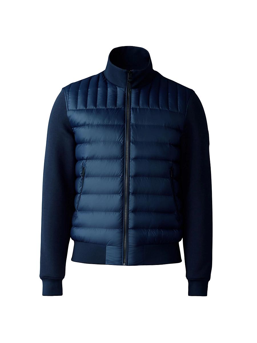 Mackages Collin bomber jacket offers an expertly tailored slim fit, featuring a mixed-media design with cotton-blend knit and down-filled paneling. This style features a stand collar, side zip pockets, and a logo patch on the sleeve. Stand collar Long sleeves Side zip closure Front zip closure 53% cotton/47% polyester Combo: 100% nylon Trim: 72% polyamide/27% nylon/1% elastane Fill: 85% down/15% feathers Machine wash Imported SIZE & FIT This style is designed for a slim fit About 26.5 from shoulder to hem Model measurements: 62 tall, 40 chest, 31 waist Model is wearing a US size Medium ABOUT THE BRAND Founded in Montreal in 1999, Mackage began as a comprehensive outerwear brand offering everything from fine leather jackets to tailored wool coats and down parkas. The label evolved to develop superior construction and comfort, creating flattering and elegant silhouettes. Mackage is committed to quality and performance with an eye toward aesthetic innovation in its womens, mens and kids designs. Mens Modern Coll & Outer - Contemporary Outerwear > Mackage > Saks Fifth Avenue > Barneys. Mackage. Color: Navy. Size: XL.