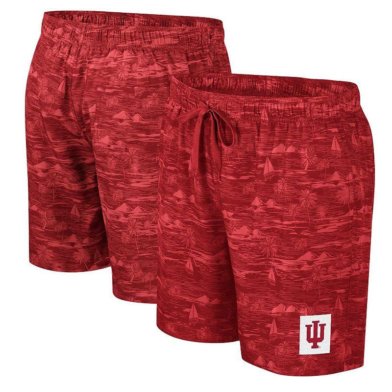 Carry your Indiana Hoosiers pride with you as you vacation by sporting these Colosseum Ozark swim shorts. An interior mesh lining promotes breathability, while an elastic waistband adjusts the fit to your perfect size. An eye-catching pattern adds flair to the classic Indiana Hoosiers graphics for a spirited poolside look. Officially licensed Elastic waistband Material: 92% Polyester/8% Spandex - Body; 100% Polyester - Liner Machine wash, tumble dry low Imported Inseam on size M measures approx. 6 Two side pockets Brand: Colosseum One back pocket Interior mesh lining Embroidered fabric applique