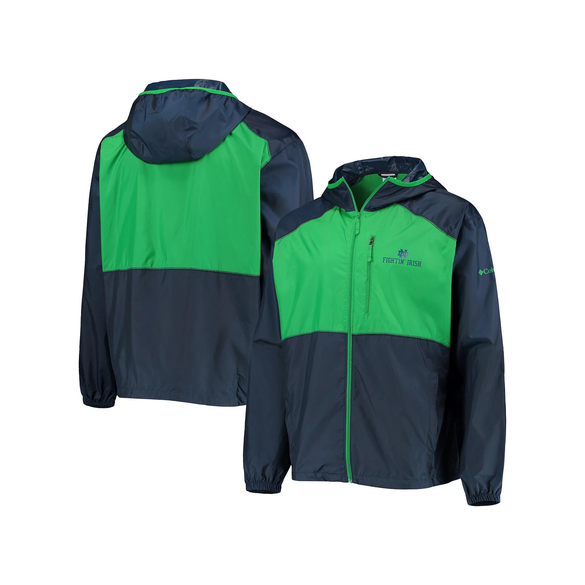 Mens Columbia /Green Notre Dame Fighting Irish Flash Forward Hoodie Full-Zip Lightweight Windbreaker Blue