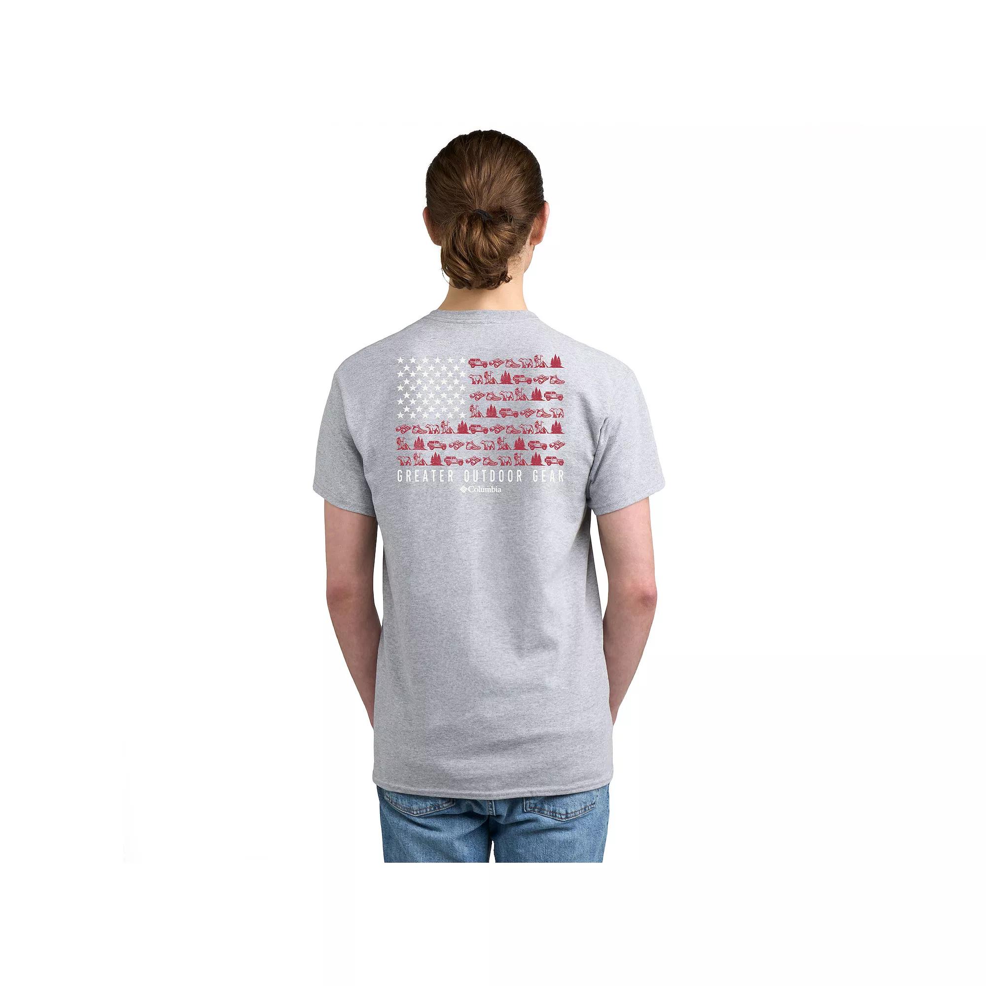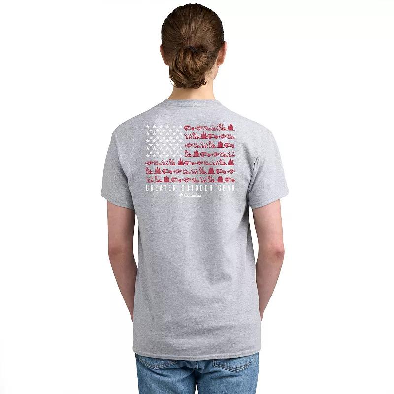 Expand your everyday wardrobe with this mens Columbia graphic tee. Click on this MENS GUIDE to find the perfect fit and more! Expand your everyday wardrobe with this mens Columbia graphic tee. Click on this MENS GUIDE to find the perfect fit and more! FEATURES Crewneck Short sleevesFIT & SIZING Classic fitFABRIC & CARE Light Grey: 90% cotton, 10% polyester, Dark Grey: 50% cotton 50% polyester, Solid colors: cotton Machine wash Imported Size: XXL. Color: Outdoor Flag. Gender: male. Age Group: adult.