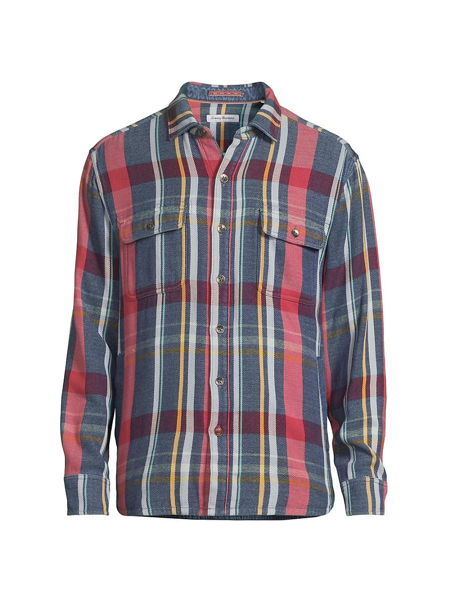 The Copper Canyon button-up shirt by Tommy Bahama is crafted of cotton showcasing a plaid pattern. A relaxed fit defines this classic style. Spread collar Long sleeves Shirttail hem Button front closure 100% cotton Machine wash Imported SIZE & FIT About 29 from shoulder to hem Model measurements: 62 tall, 40 chest Model is wearing a US size Medium. Mens Modern Coll & Outer - Contemp Classic Collecti > Tommy Bahama > Saks Fifth Avenue > Barneys. Tommy Bahama. Color: Norse Blue. Size: XXL.