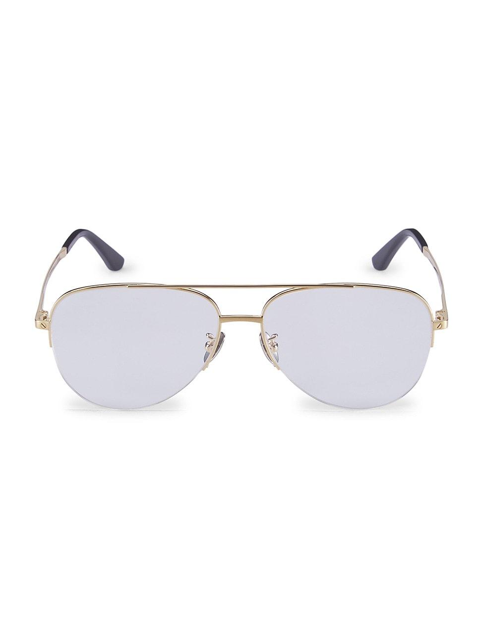From the Core Range Collection. Sleek in design with a dual brow bar, these stylish glasses by Cartier flaunt an updated aviator silhouette with goldtone finish. 100% UV protection Solid lenses Adjustable nose pads Case and cleaning cloth included Optional lens replacement Titanium Made in Japan SIZE 58mm lens width 15mm bridge width 145mm temple length ABOUT THE BRAND Regarded as one of the most prestigious jewelry brands in the world, Cartier is known for exquisite craftsmanship and timeless designs. Founded in Paris in 1847 by Louis-Franois Cartier, the iconic jewelry house continues to create sought-after pieces like the celebrated Panthre de Cartier watches. Soft Accessories - Men Sunglasses > Cartier > Saks Fifth Avenue > Barneys. Cartier. Color: Gold Transparent.