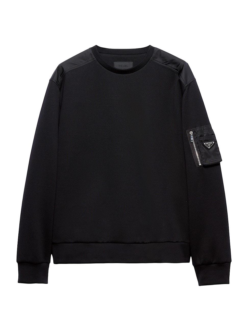 This cotton fleece sweatshirt with an oversized silhouette is defined by Re-Nylon details with functional style like the zipper pocket decorated with the triangle logo. Oversized fit Long sleeves Crewneck Straight hem Cotton fleece cuffs Enameled metal triangle logo Length 74 cm. size. M Re-Nylon zipper pocket on the sleeve 70% cotton, 30% nylon, 100% recycled polyamide, 100% solventfree resin pu Imported. Lsd Rtw - Prada Rtw > Prada > Saks Fifth Avenue > Barneys. Prada. Color: Black. Size: XXXL.