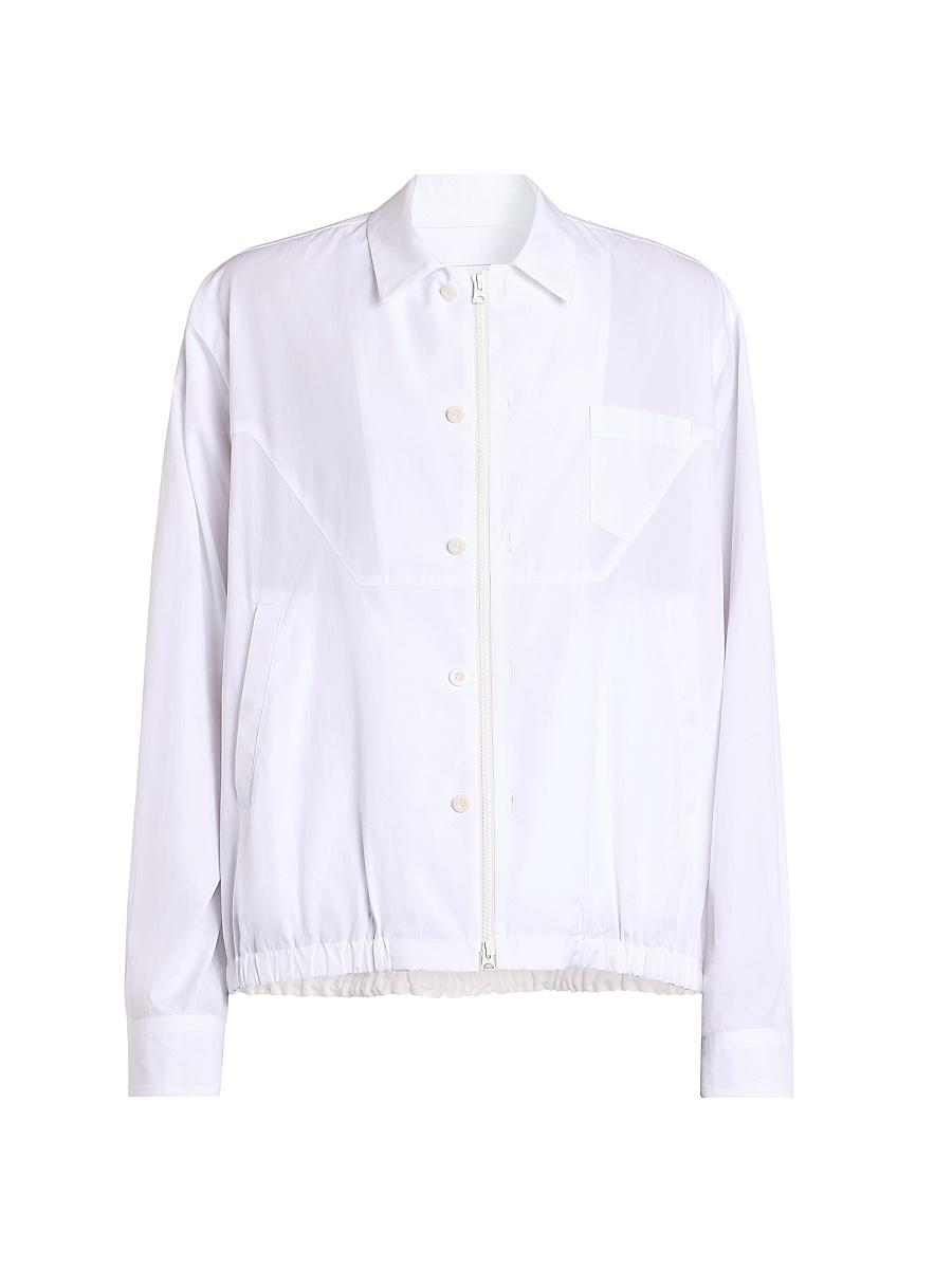 Crafted of cotton poplin, this jacket from Sacai features buttoned detailing at the front zip closure. A spread collar, side slant pockets, and an elasticized hem lend structure and comfort to this style.Spread collarLong sleeves, barrel cuffsChest patch pocketSide slant pocketsElasticized hemFront zip closure100% cottonDry cleanMade in JapanSIZE & FITModel measurements: 6'2" tall, 40" chest, 31" waistModel is wearing a US size 40R