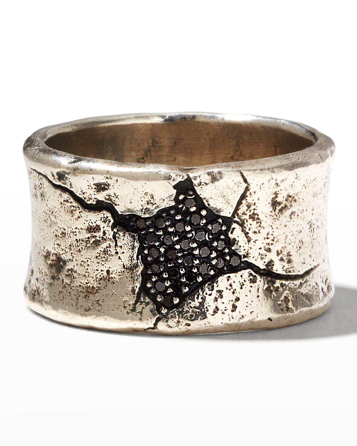 Mens Crack Band Ring w/ Black Diamond Pav