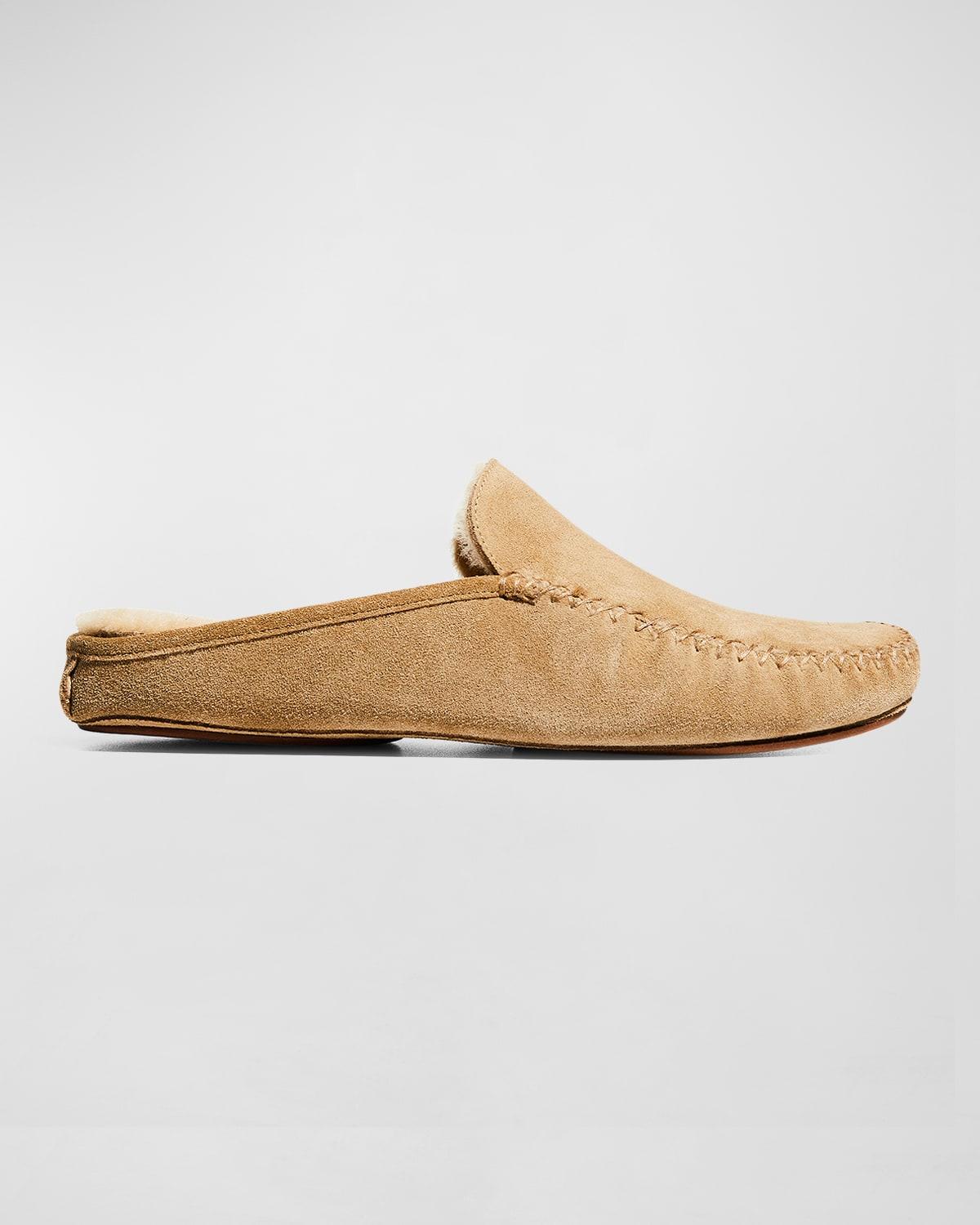Manolo Blahniks Crawford slippers are designed with a calf suede upper and genuine shearling fur lining. This style features a flexible tubular silhouette and hand-stitched vamp. Crosta suede/lamb shearling upper Square toe Slips on 100% calf leather trim Lamb shearling/leather lining 100% suede outsole Fur type: Dyed lamb shearling Fur origin: Italy Made in Italy. Mens Shoes - Mens Classic Footwear > Manolo Blahnik > Saks Fifth Avenue > Barneys. Manolo Blahnik. Color: Light Brown. Size: 8.