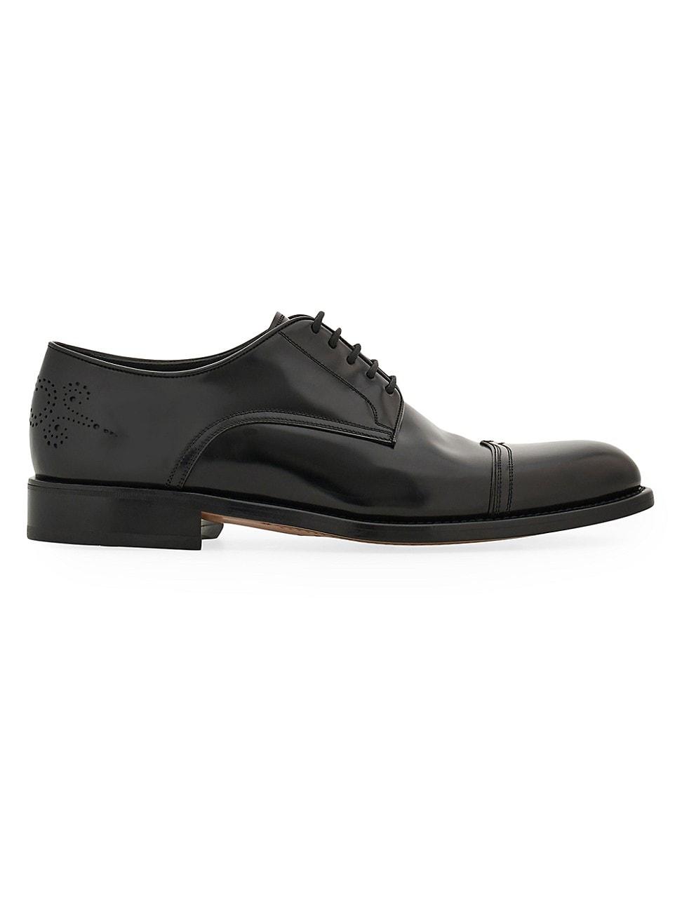 Made in Italy, these FERRAGAMO Credence Oxfords are meticulously crafted of leather and feature a leather sole. Round toe Lace-up style Leather upper Leather lining Leather sole Made in Italy ABOUT THE BRAND Italian designer Salvatore Ferragamo began his journey in 1927 with a vision of creating the worlds most beautiful shoes. The label expanded to menswear in the 1970s, and remains famed for its made-in-Italy pieces. The craftsmanship inherent in its shoes is also found in accessories like sunglasses, belts and ties. The brands signature Gancini logo-a backwards horseshoe-can be found on its classic loafers and fine leather goods. Mens Shoes - Ferragamo Mens Shoes > Ferragamo > Saks Fifth Avenue > Barneys. FERRAGAMO. Color: Nero. Size: 8.