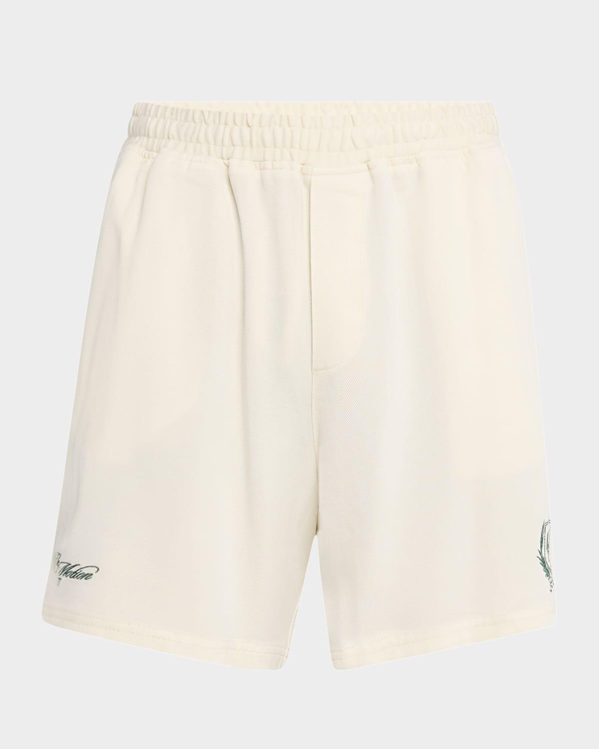 REPRESENT leisure shorts crafted from lightweight twill Approx. measurements: 12.5" rise; 6" inseam Elasticized waist Side seam pockets Back patch pockets Contrast logo embroidery on front hems Relaxed legs Pull-on style Tencel® lyocell Made in Portugal