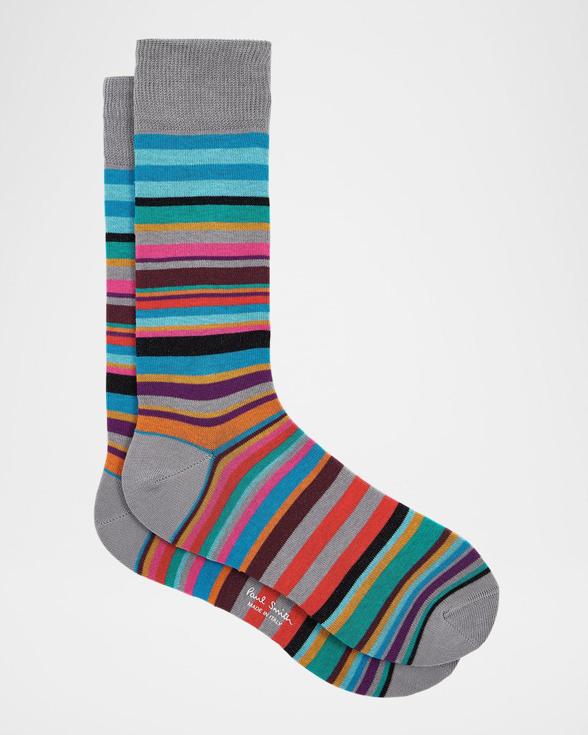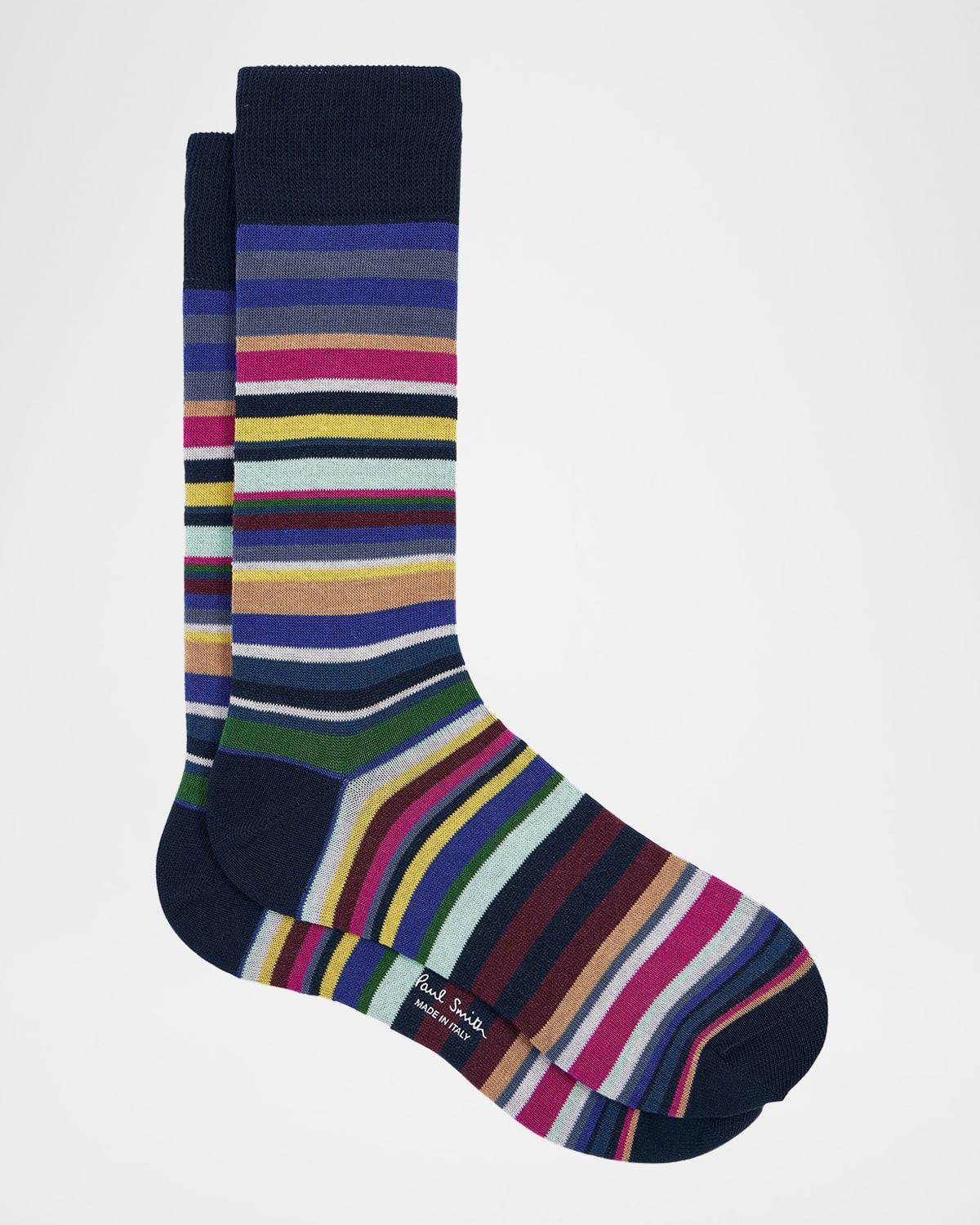 Mens Curtis Stripe Cotton-Stretch Crew Socks