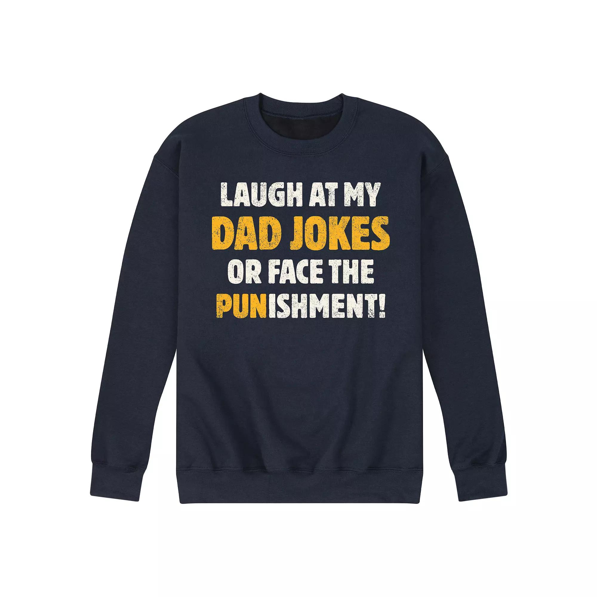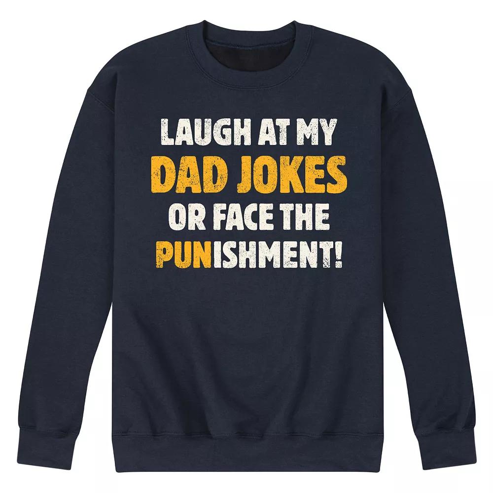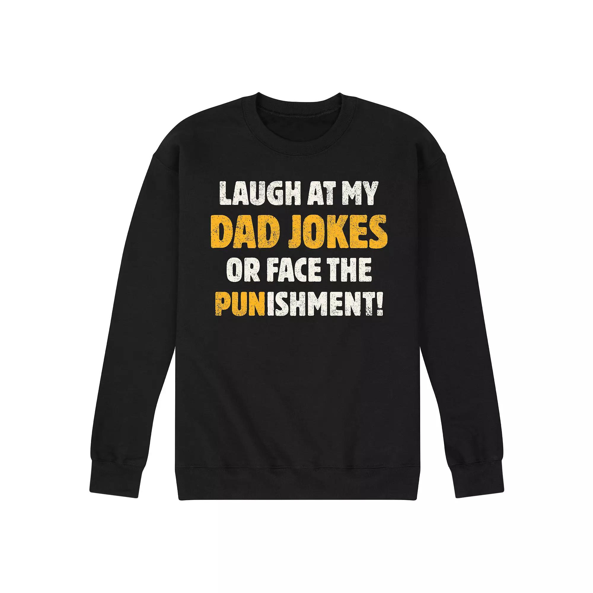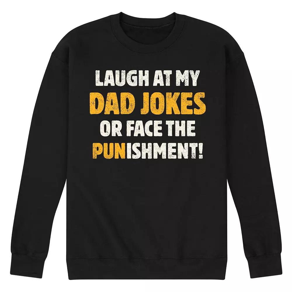 Celebrate Dad on Fathers Day or any day with this mens Dad Jokes Punishment Fleece Sweatshirt. FEATURES Crewneck Long sleeveFIT & SIZING ClassicFABRIC & CARE Cotton/Polyester Machine wash Imported Color: Black. Gender: male. Age Group: adult. Material: Polyester|Cotton.