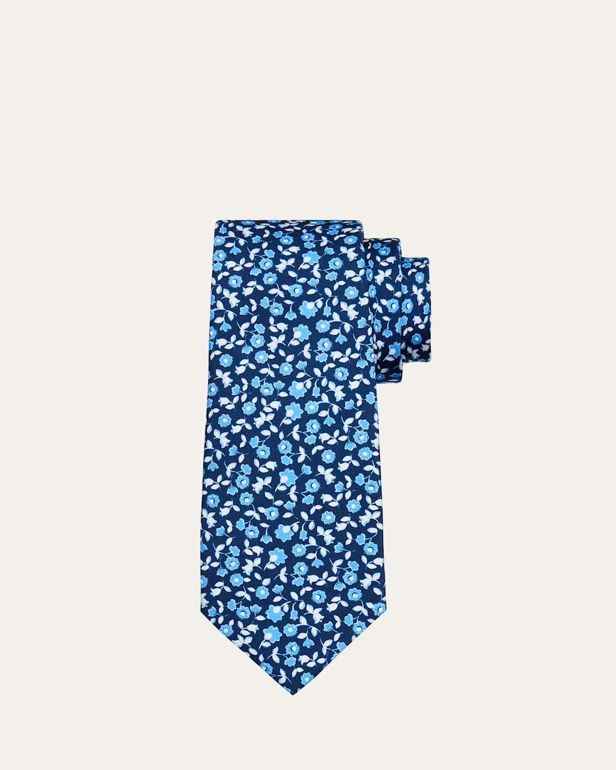 Men's Silk Micro-Floral Seven-Fold Tie