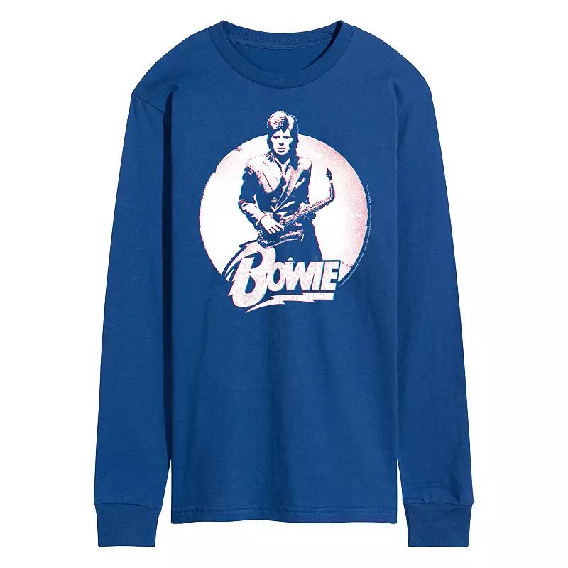 Show love for your favorite rock star with this Mens David Bowie Distressed Long Sleeve Tee. Show love for your favorite rock star with this Mens David Bowie Distressed Long Sleeve Tee. FEATURES Crewneck Long sleeveFABRIC & CARE Solid: cotton; heathered: cotton, polyester Machine wash Imported Size: XXL. Color: Med Blue. Gender: male. Age Group: adult. Pattern: Graphic.