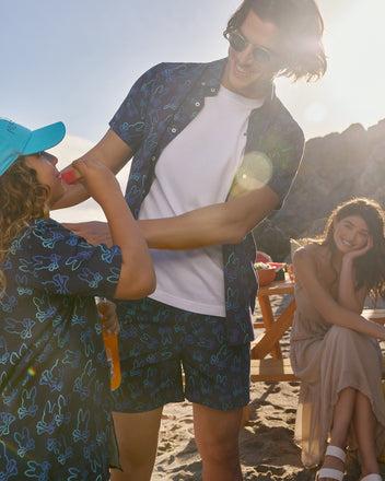 Diamond-knit in Pima cotton piqué, the men's Southport polo has a two-tone melange collar and cuffs, with a subtely-embroidered Bunny at the back collar. 100% Pima cottonMade in PeruRegular fitSolid patternClassic 4kModel height is 6'1 (approx. 185cm) and is wearing a size medium.