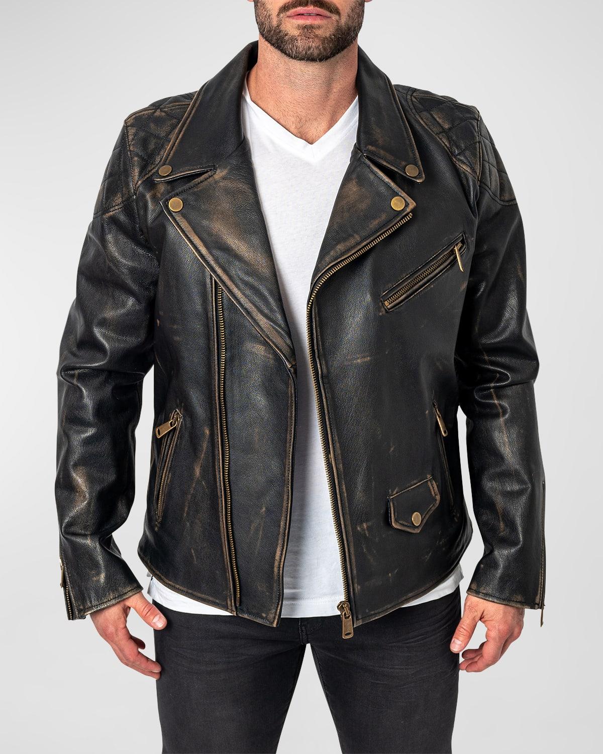 Bursts of metallic copper burnishing enrich a rugged leather jacket fixed with brassy goldtone hardware. Notched lapels Partially lined Leather Professional leather clean Made in Turkey