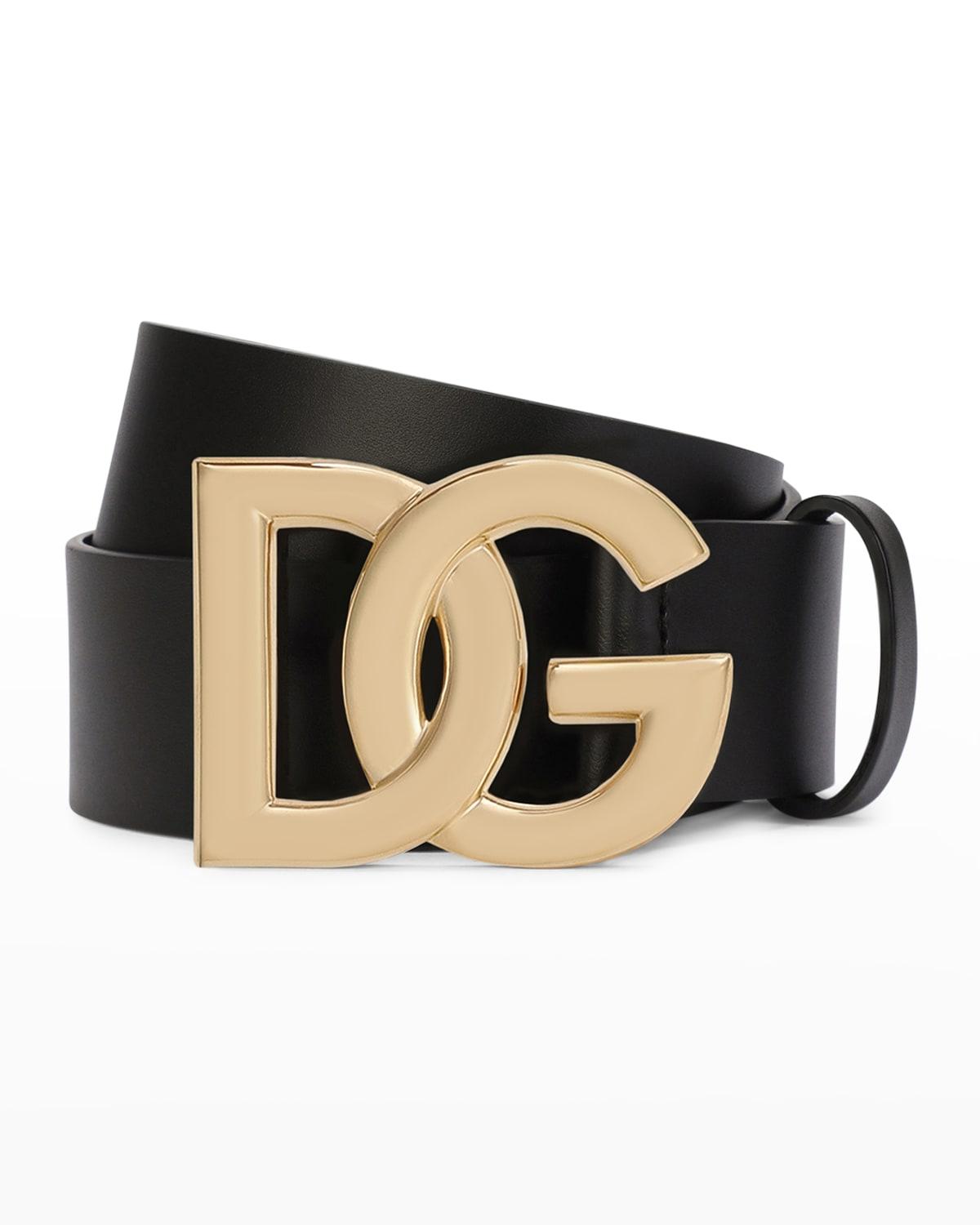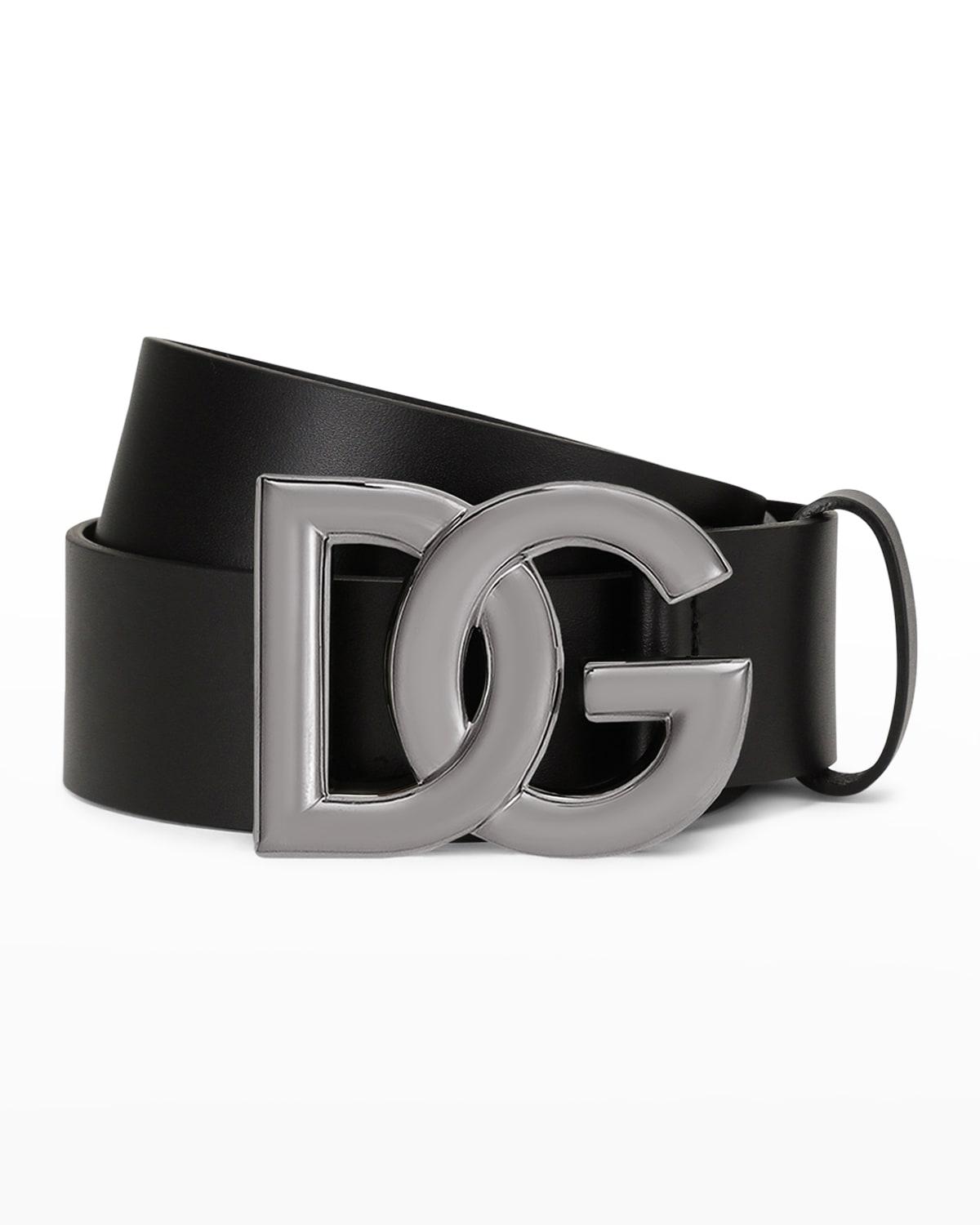 Mens DG-Logo Leather Buckle Belt