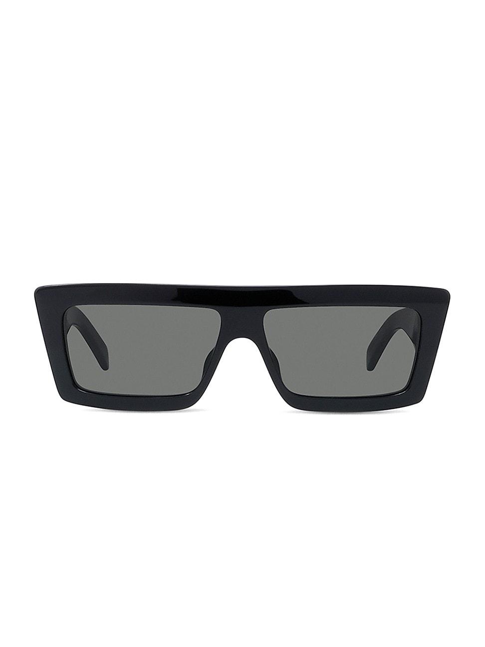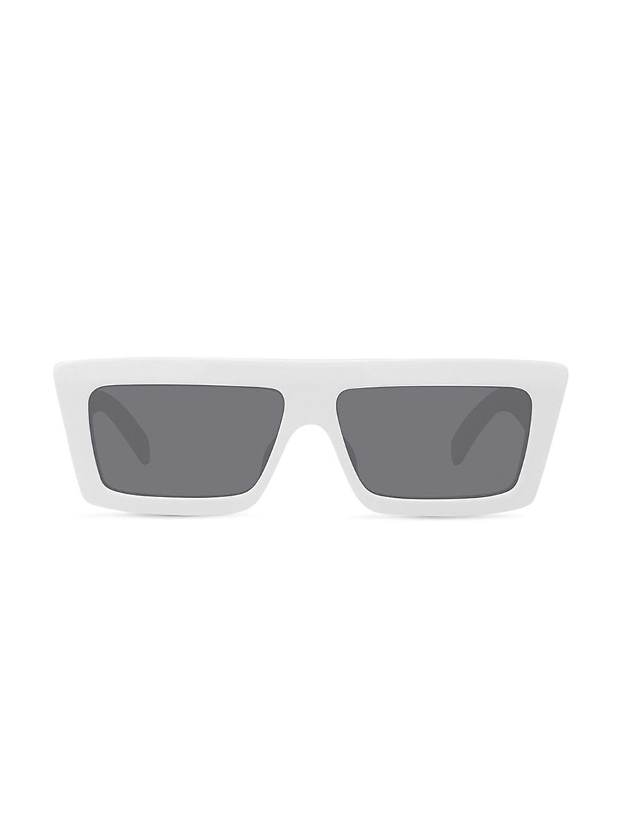 Rectangular shiny black acetate sunglasses with solid smoke lenses. 100% UV protection Solid lenses Case and cleaning cloth included Acetate Made in Italy SIZE 57mm lens width 13mm bridge width 140mm temple length. Soft Accessories - Sunglasses > Celine > Saks Fifth Avenue > Barneys. CELINE. Color: White.