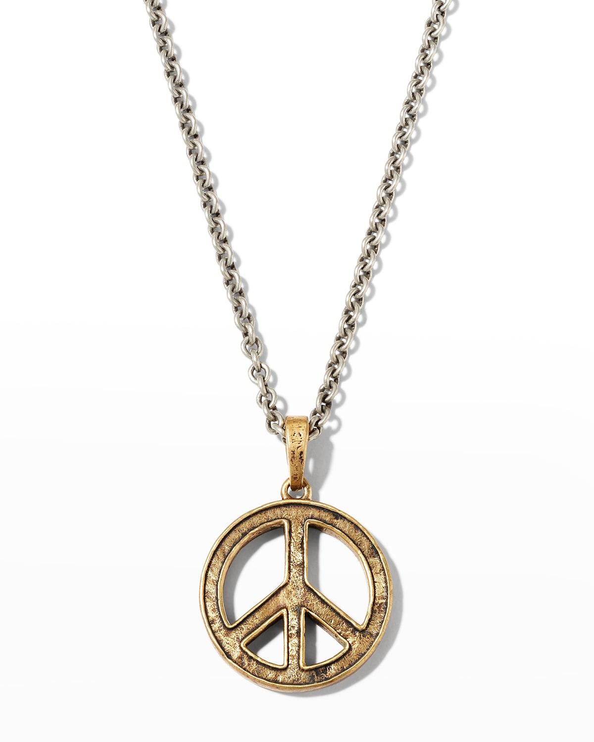 A cool vintage peace pendant adds a versatile vibe to a stylish necklace shaped from Italian artisan metals. 24 chain length; 1 1/4 pendant drop; 7/8 pendant width Brass/silver Imported