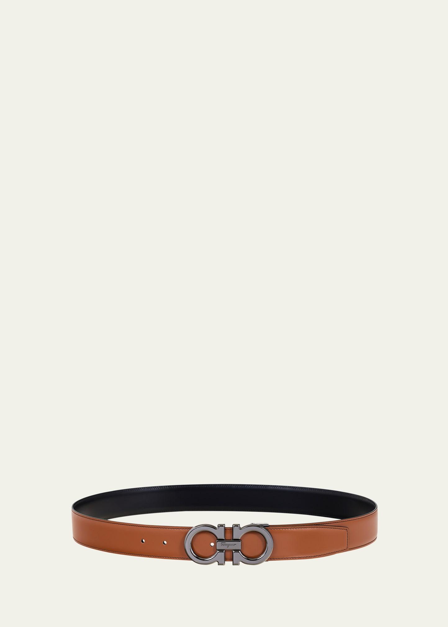 Ferragamo reversible belt in smooth calf leather Approx.1.38W Gancini buckle The adjustable length allows for a more personalized fit and style Easily cut the belt strap or punch another hole for a tighter or looser fit Leather Made in Italy